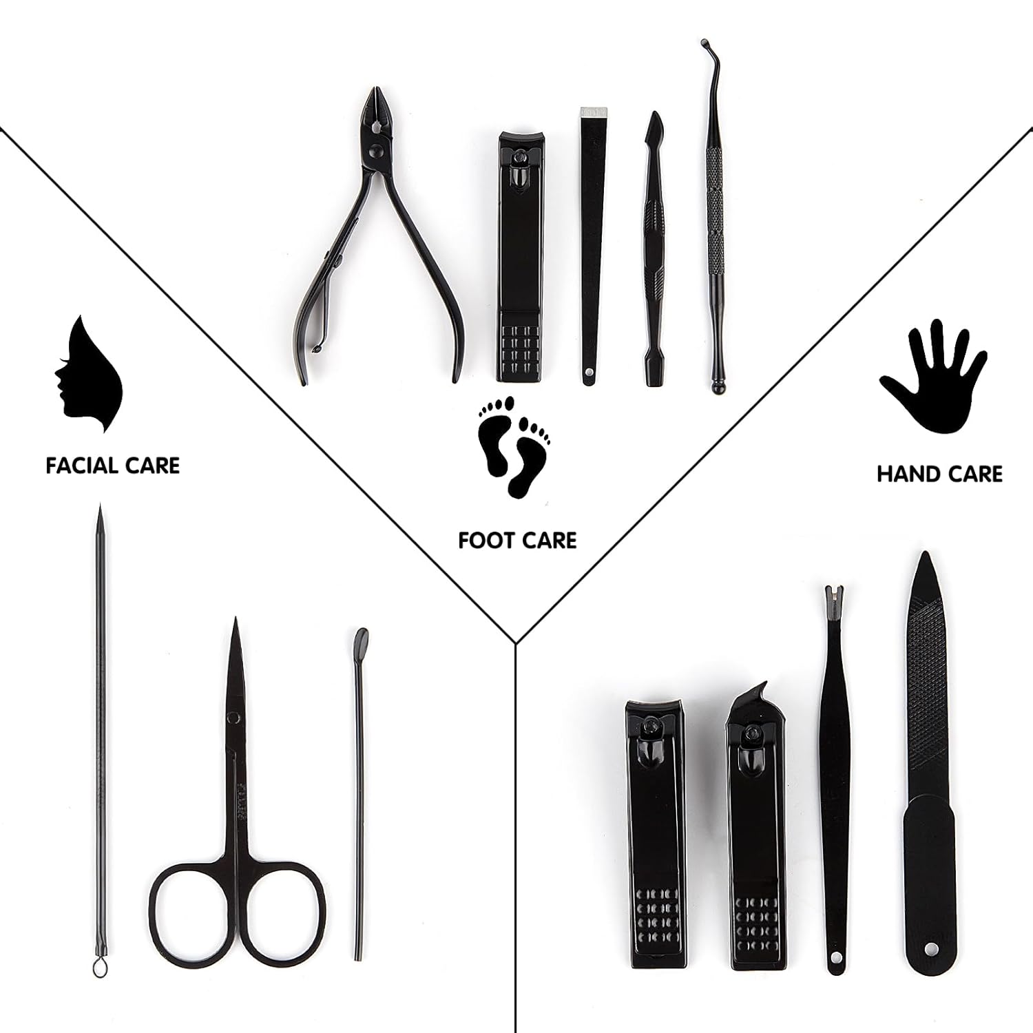 - Manicure Set:manicure and beauty kit contains 12 kinds of care tools for hands and feet,multifunctiona include hand care,facial care,foot care tools,can meet all of you needs, Manicure Kit, Nail Care Kit For Men.