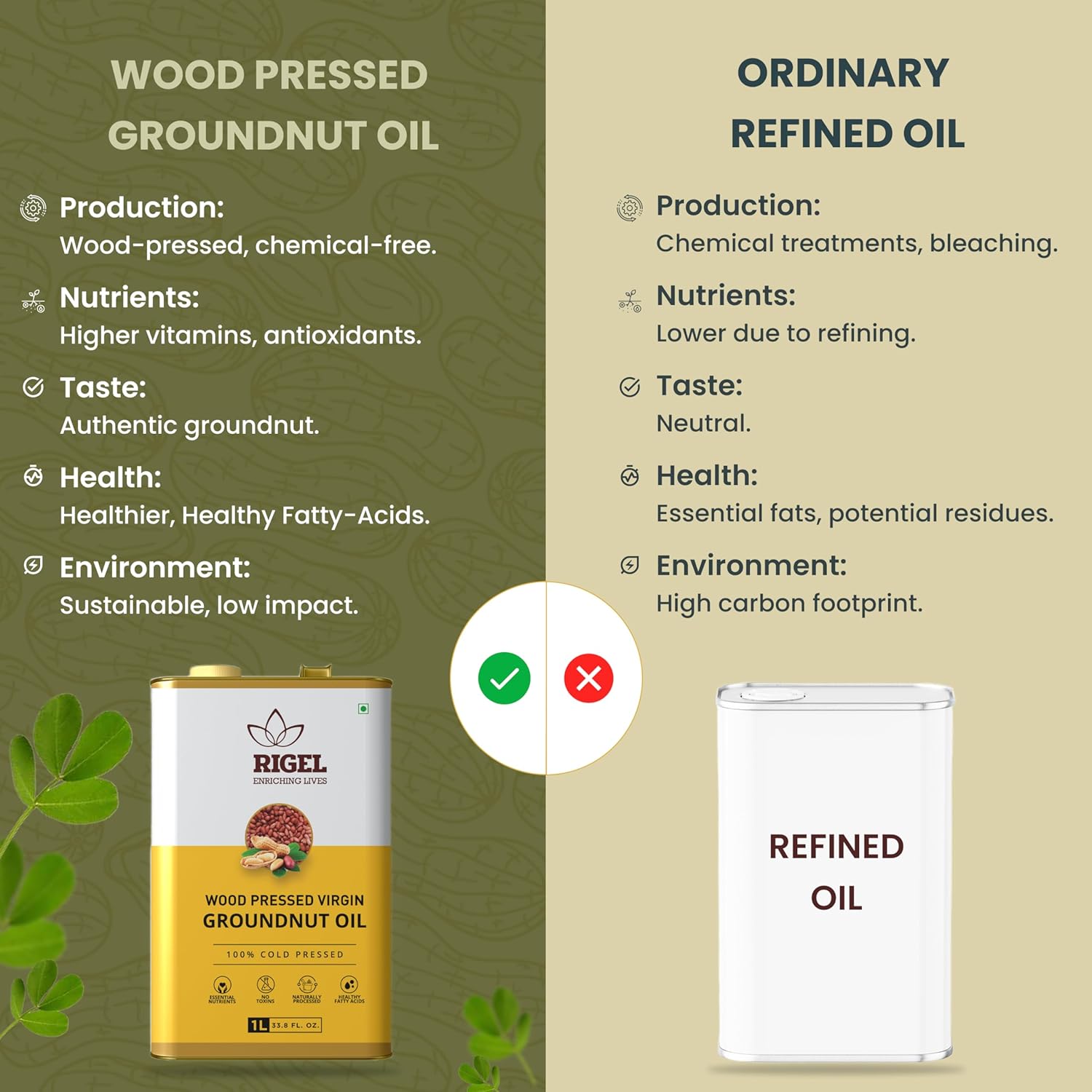- 💛 Nutrient-Rich Goodness: Our meticulous cold-pressing process ensures that Rigel Spices Cold-Pressed Peanut Oil retains a wealth of vital nutrients, including heart-healthy monounsaturated fats, vitamins, and minerals. Embrace the natural goodness and support your overall well-being with every drop.