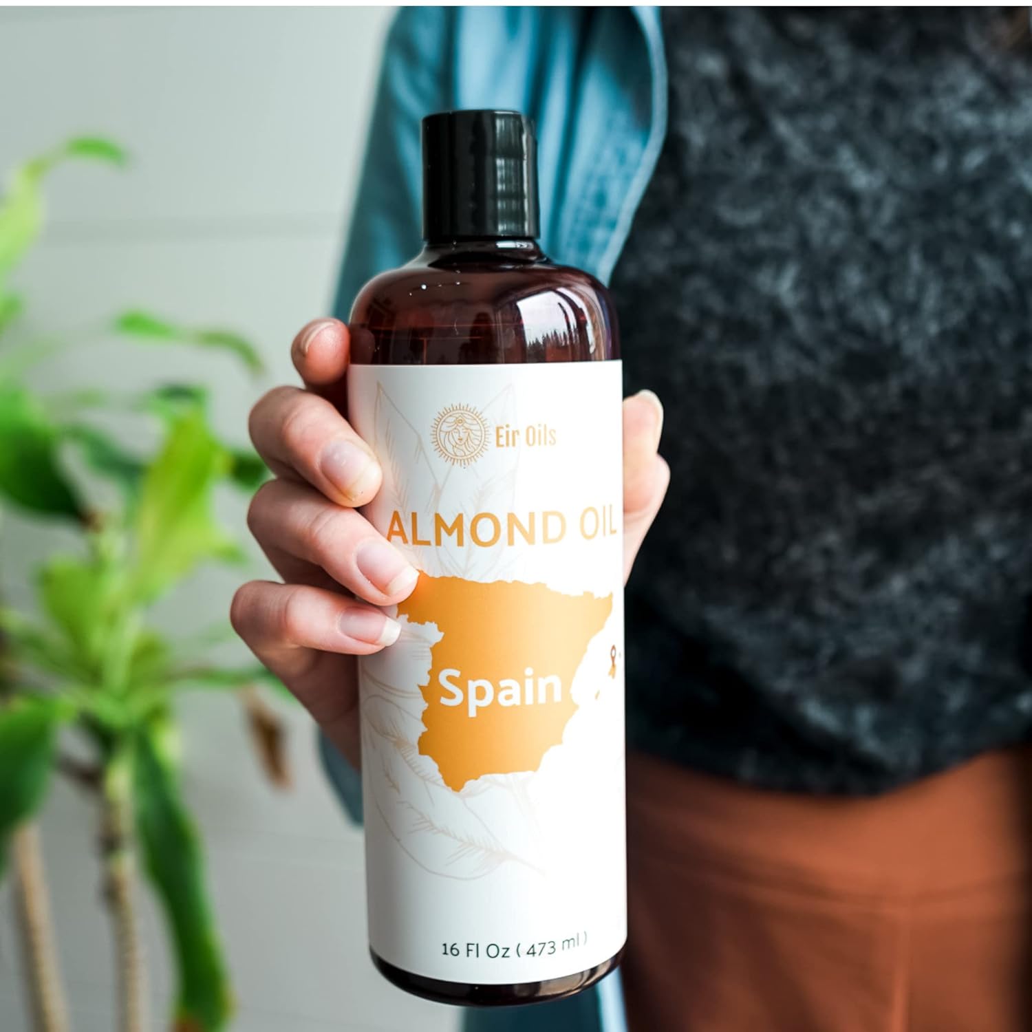 Sweet Almond Oil (16 oz) - for Skin and Hair - Carrier Oil for Essential Oils Mixing - From EIR Oils' Farm in Mallorca, Spain - 2 Packs