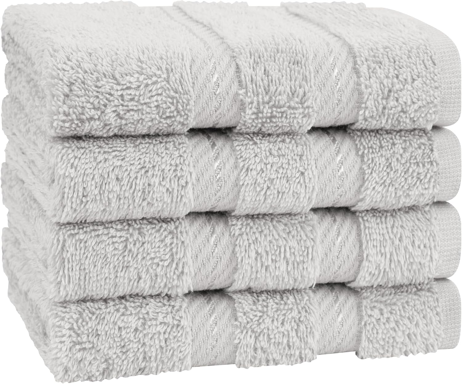 American Soft Linen Luxury Washcloths for Bathroom, 600 GSM 100% Cotton 4 Piece Turkish Wash Cloth Set, 13x13 in Soft Rags for Body and Face, Silver Gray Washcloths