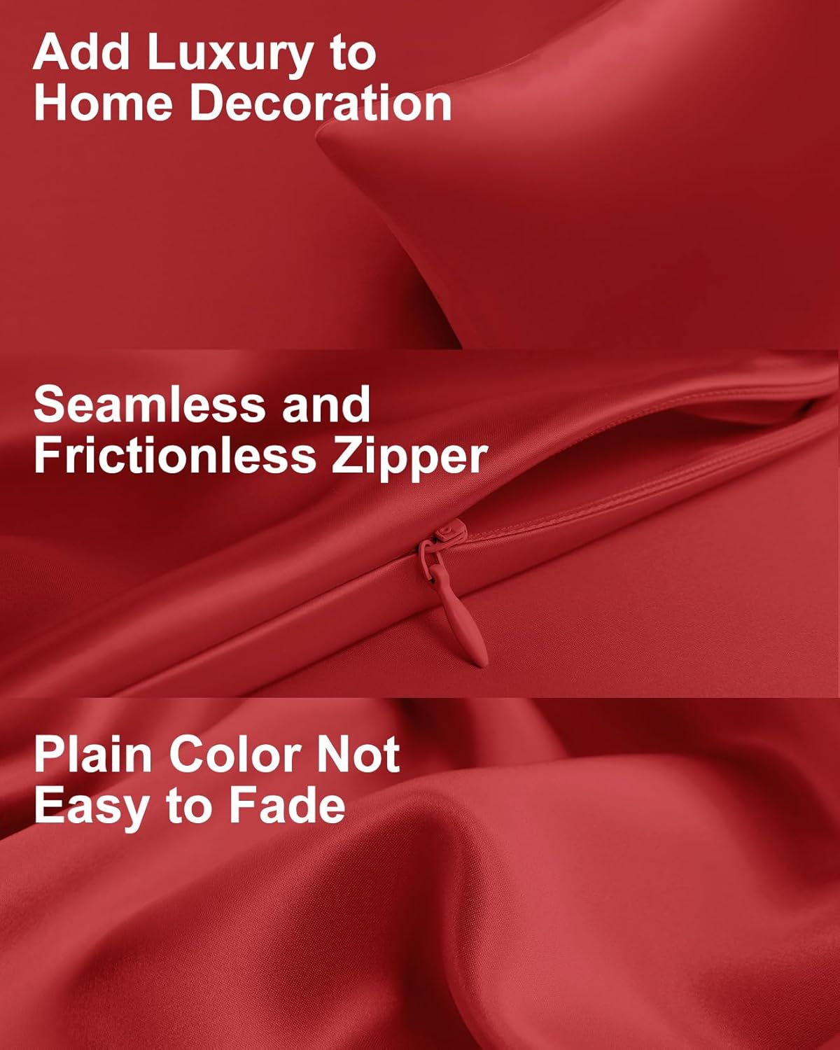 THXSILK Set of 2 100% Pure Mulberry Silk Pillowcases for Hair and Skin - Real Grade 6A+ Mulberry Silk - Durable, Soft and Anti-Aging Silk Pillow Cases with Zipper(King Size 20"x36", Red)