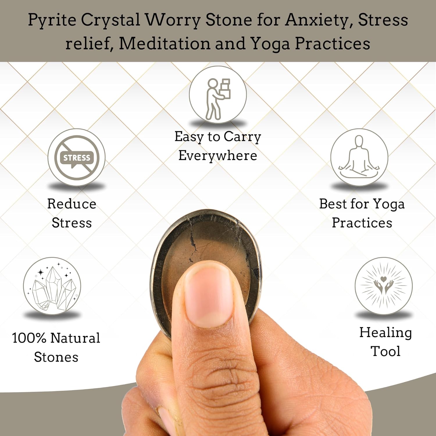 Natural Pyrite Worry Stones – Crystal Thumb Worry Stone for Anxiety, Stress – Relaxing and Soothing Balance Stones for Meditation, Stress Relief – Healing Stones and Crystals for Men and Women