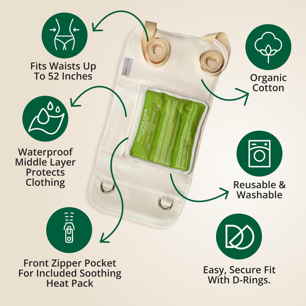 - Organic Unbleached Cotton Castor Oil Compress Wrap: Our pack is made from organic, unbleached cotton and is designed to provide maximum comfort and ease of use. It is soft, and flexible and can fit waists up to 52 inches. The wrap has a front zipper pocket, an ideal spot for the included heating pack. It is washable and reusable.