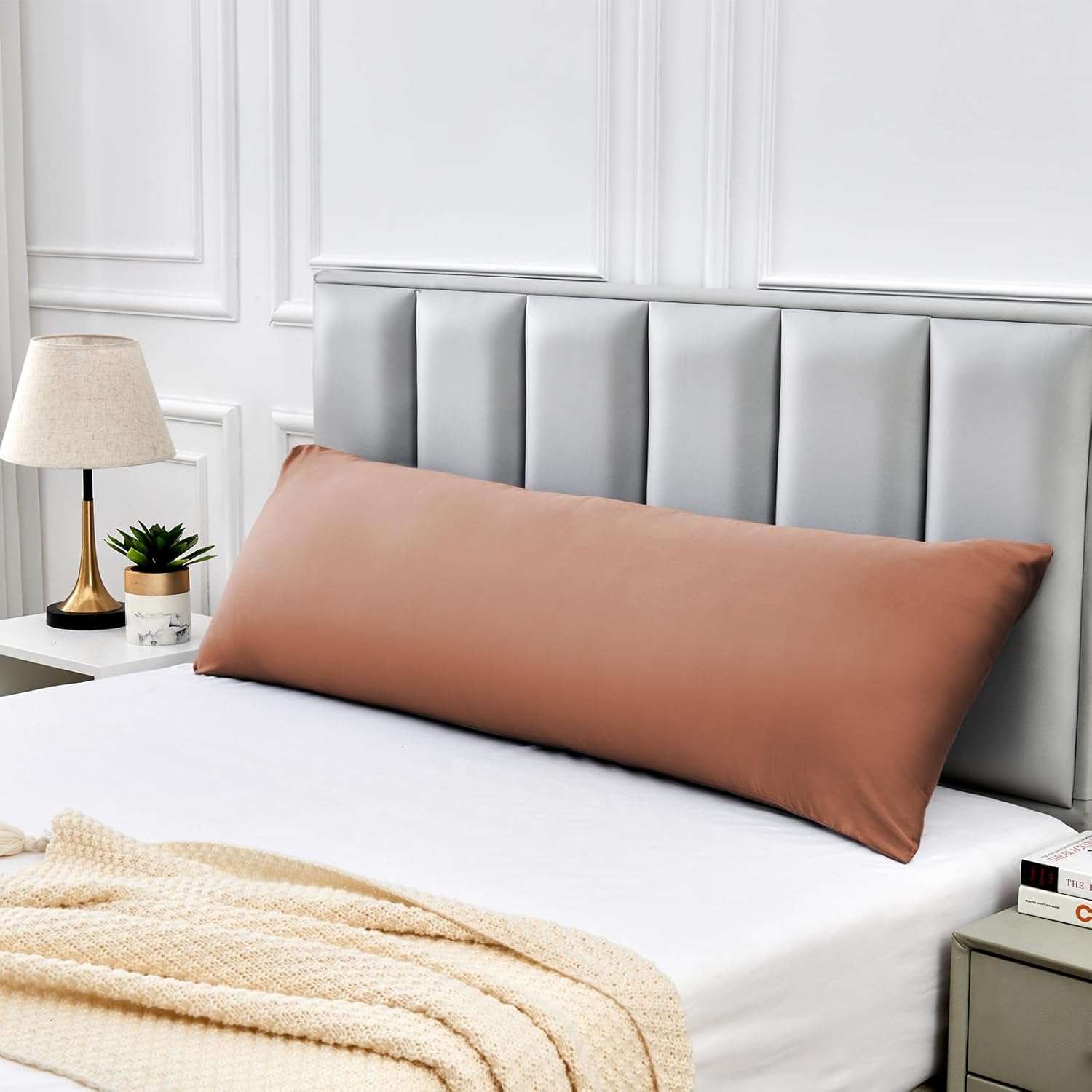 Warmstar Cotton Body Pillow Cover 1 Pack, 600 Thread Count Body Pillow case 20"x54", Long Body Pillow Case Cover Soft Breathable with Envelope Closure,Coffee Brown