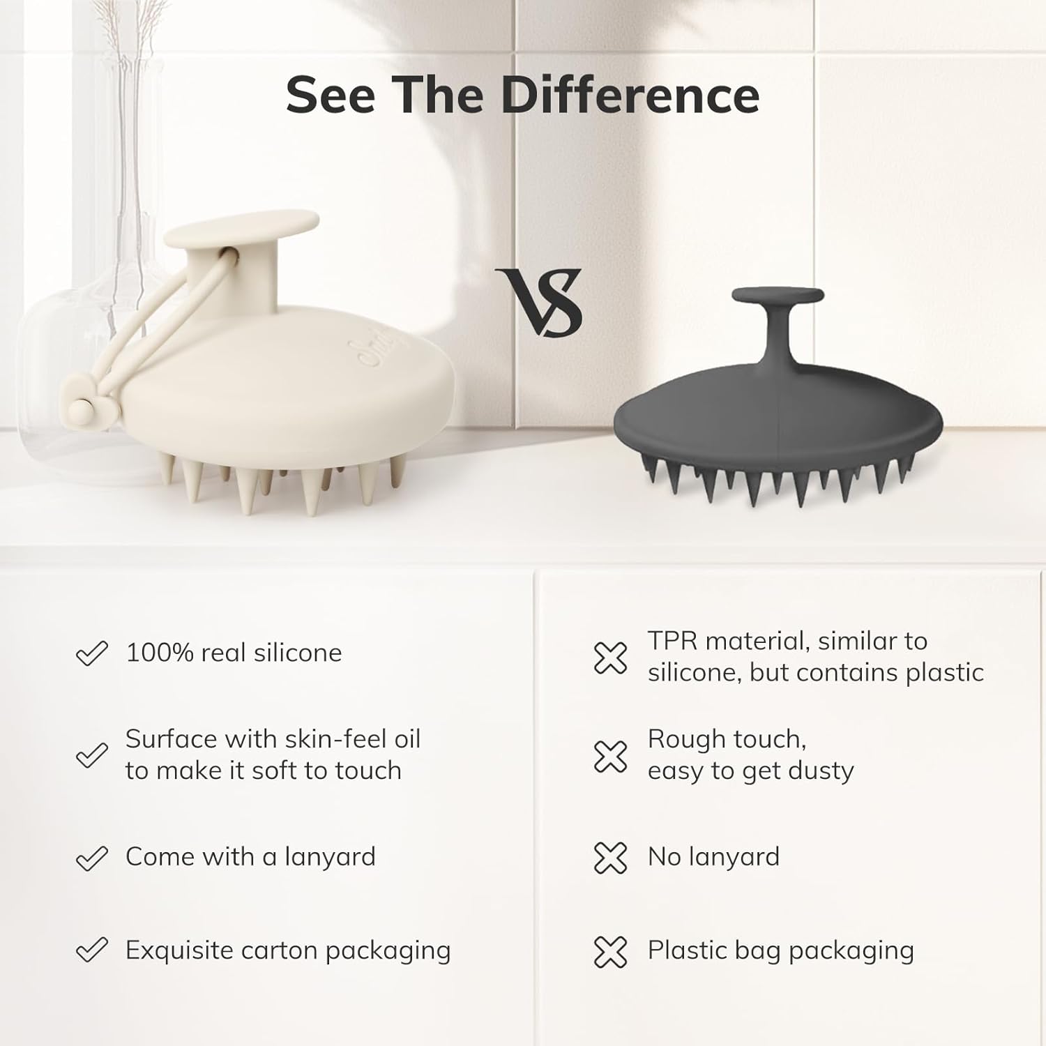 - One-Piece Silicone Scalp Massager: Our scalp massager use upgraded one-piece design, which is more solid and durable. Compared to other scalp brushes, it will never fall apart or break. 100% food grade silicone material, waterproof and moisture-proof. There is no need to worry about mold and water accumulation