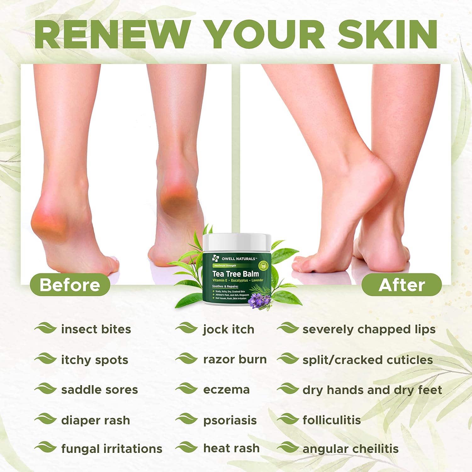 - Owell Tea Tree Balm for Athletes foot, Folliculitis, cracked heel, antifungal.