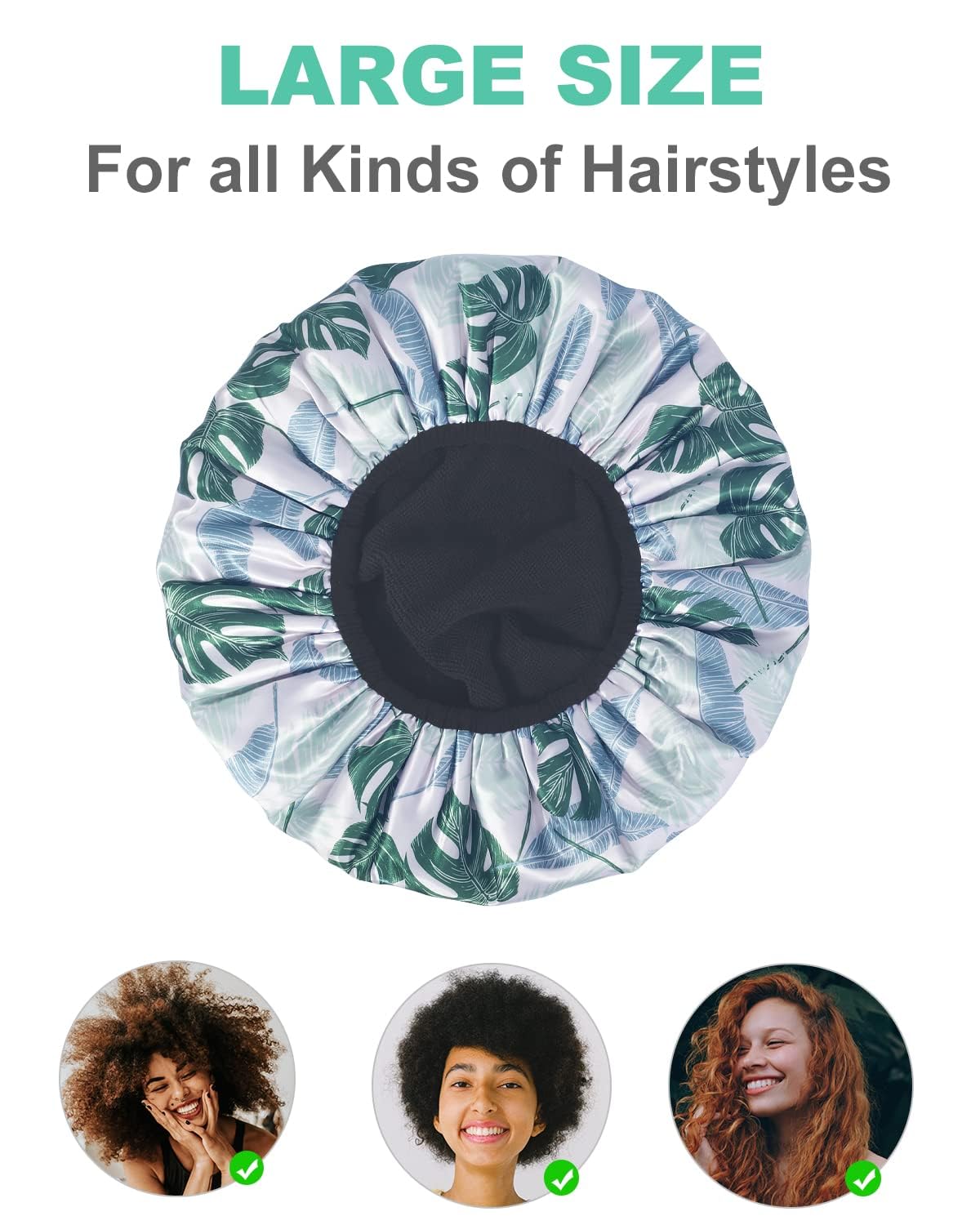 - 【EXTRA LARGE SIZE】Our shower caps are 13.5 inches in diameter, making them suitable for all hair lengths and thicknesses, including curly hair, long hair, and braids