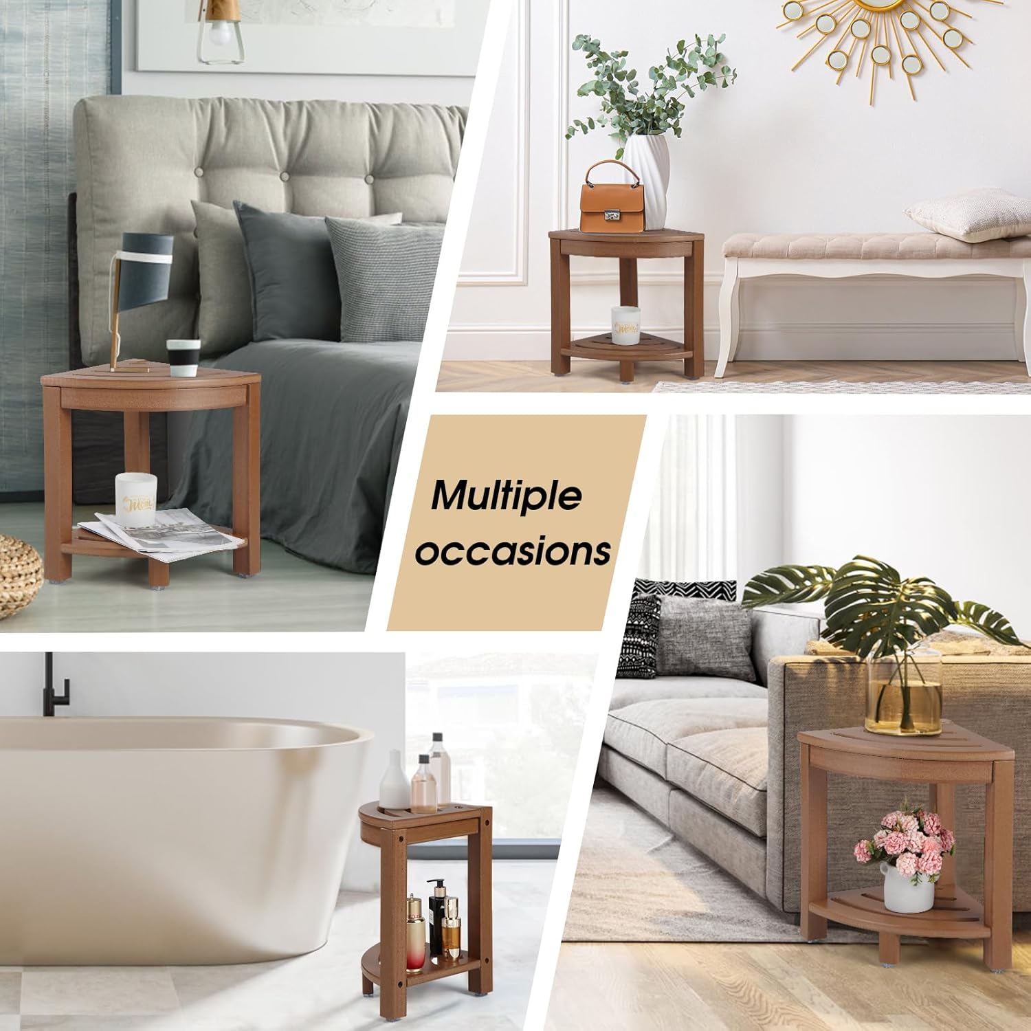 HDPE Corner Shower Stool,Shower Bench Seat with Storage Shelf for Shaving Legs Plastic Spa Bath Step Foot Rest for Bathroom Small Place (Teak)