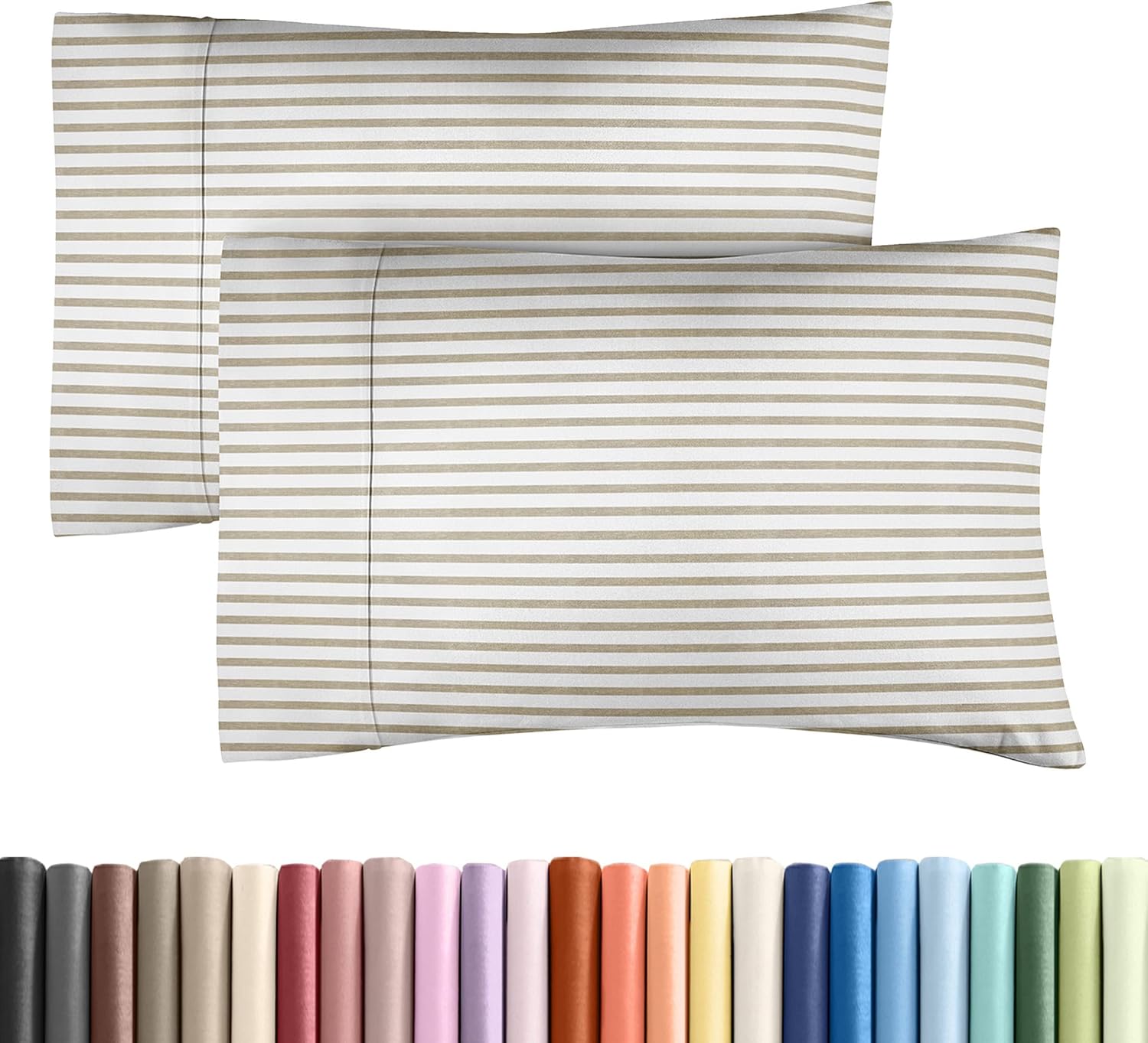 Queen Pillow Cases Set of 2 - Ultra Soft Hotel Quality Pillowcase Covers - Comfy, Cozy & Wrinkle Free - Shrinkage & Fade Resistant - Machine Washable Pillow Protectors - 2 Piece Set - Beige Stripes 2
