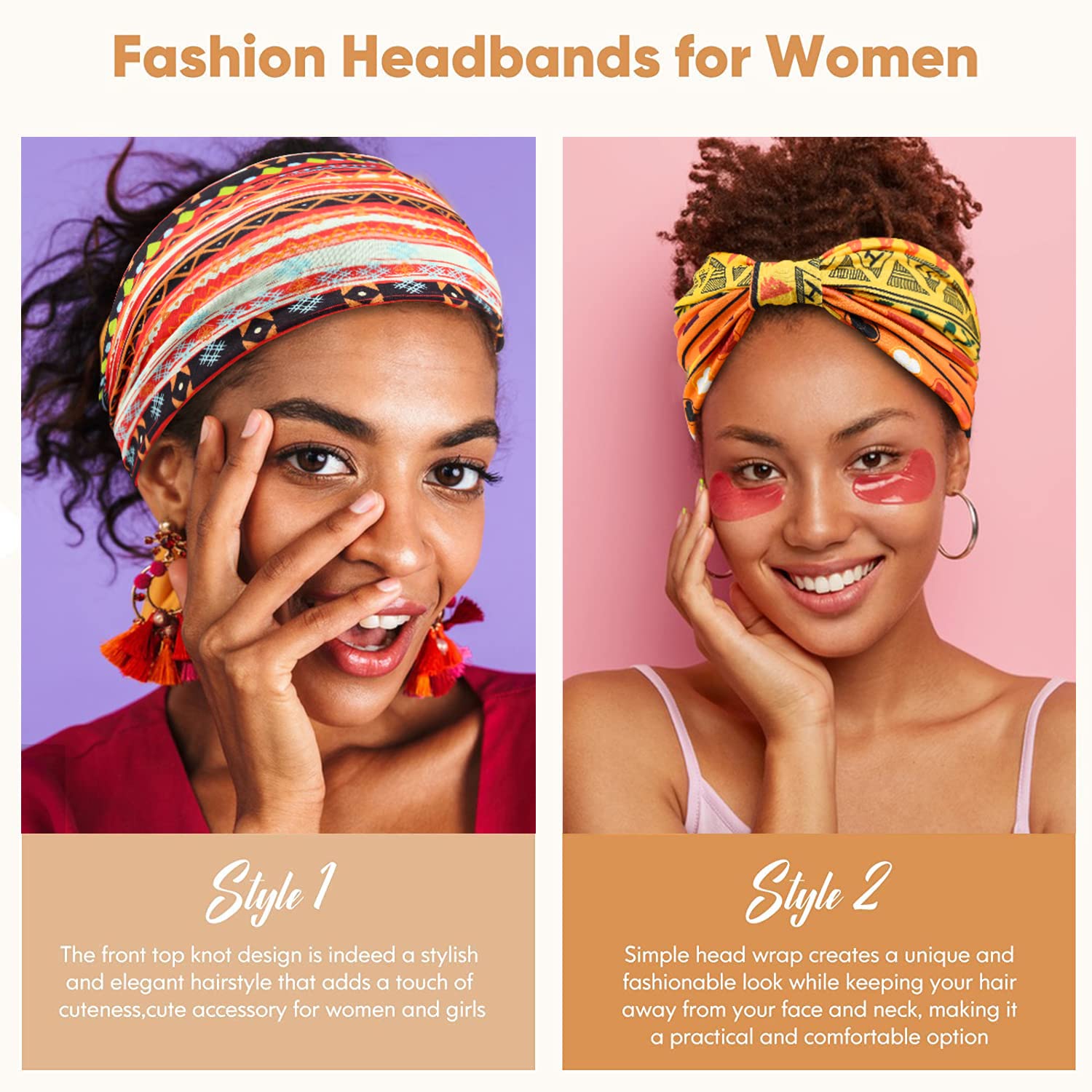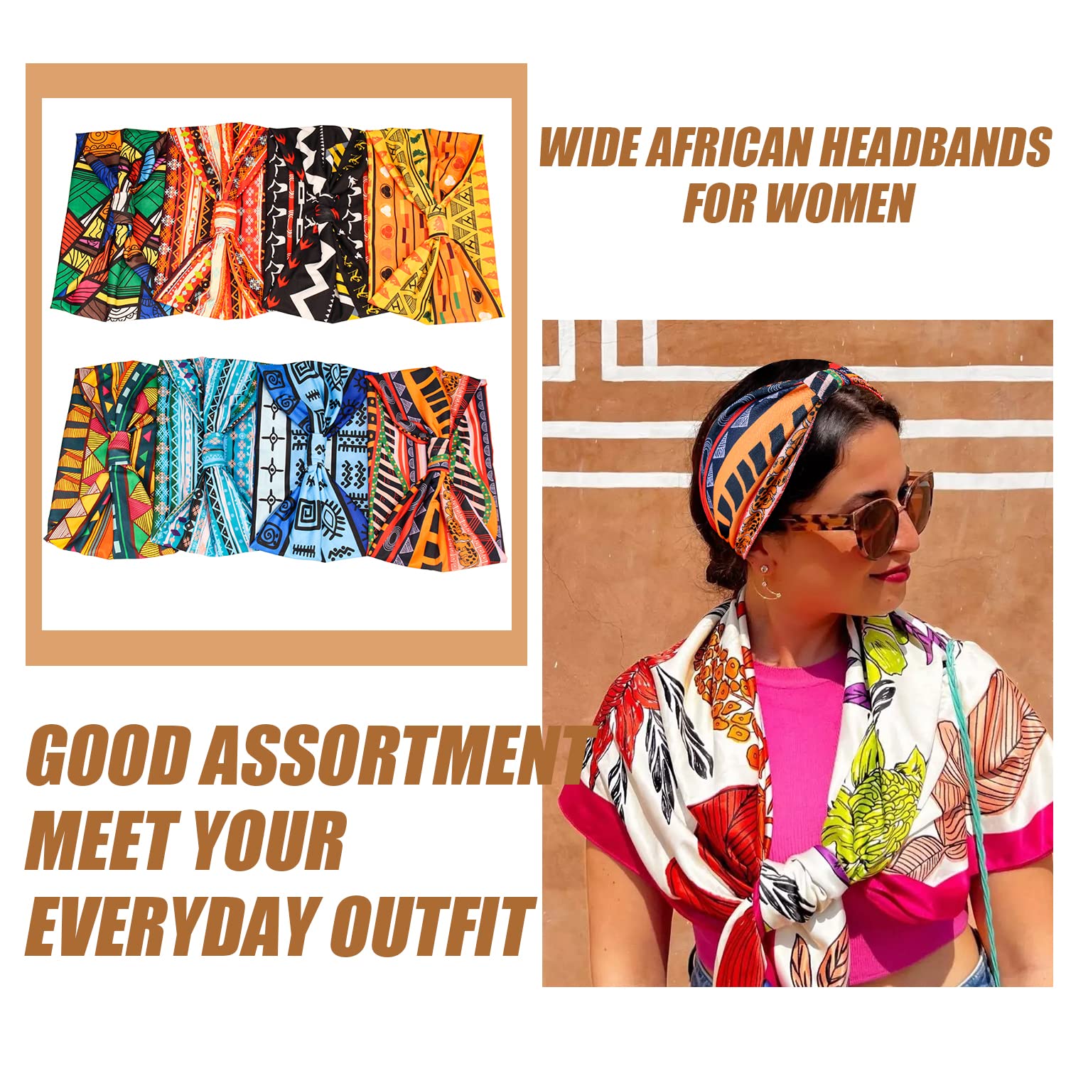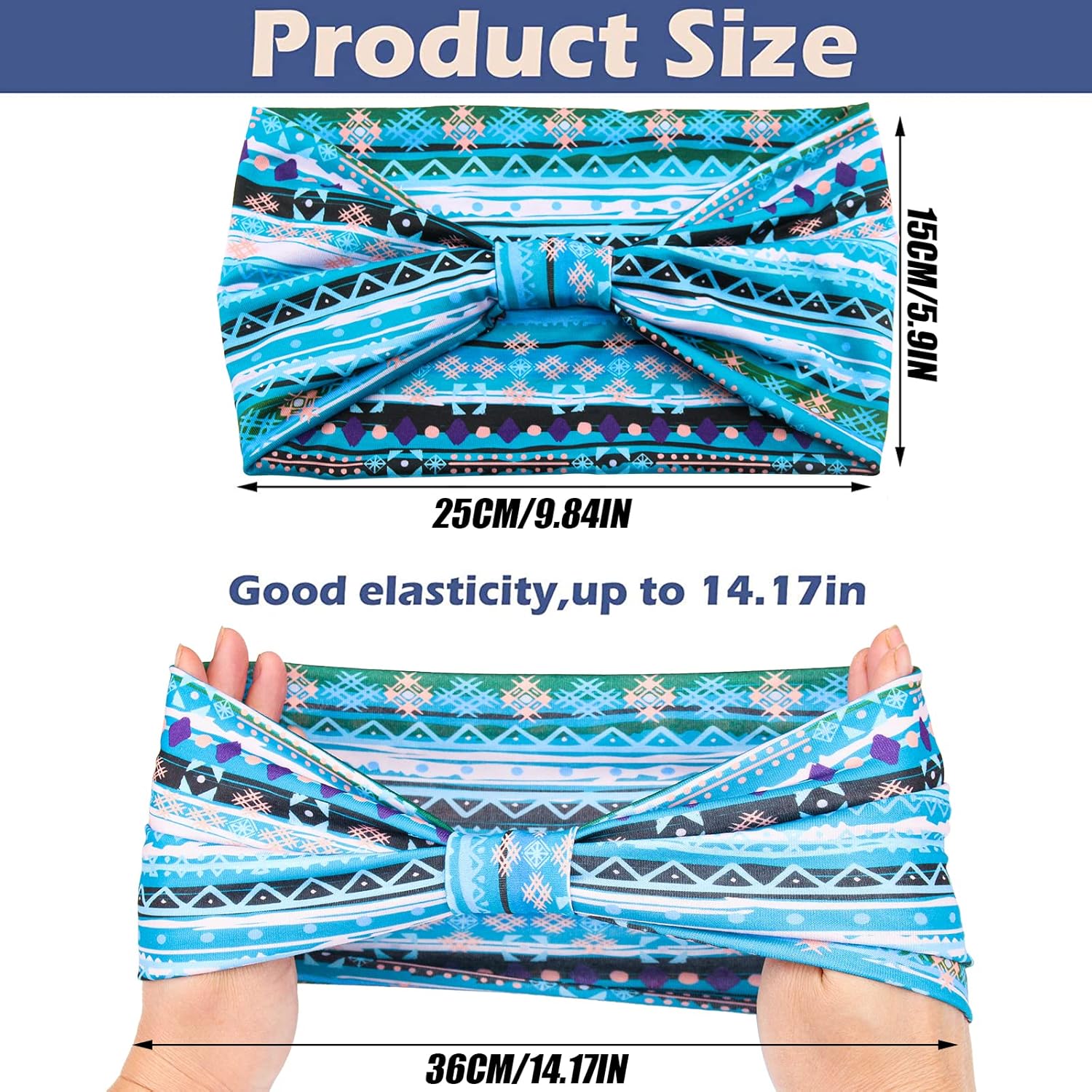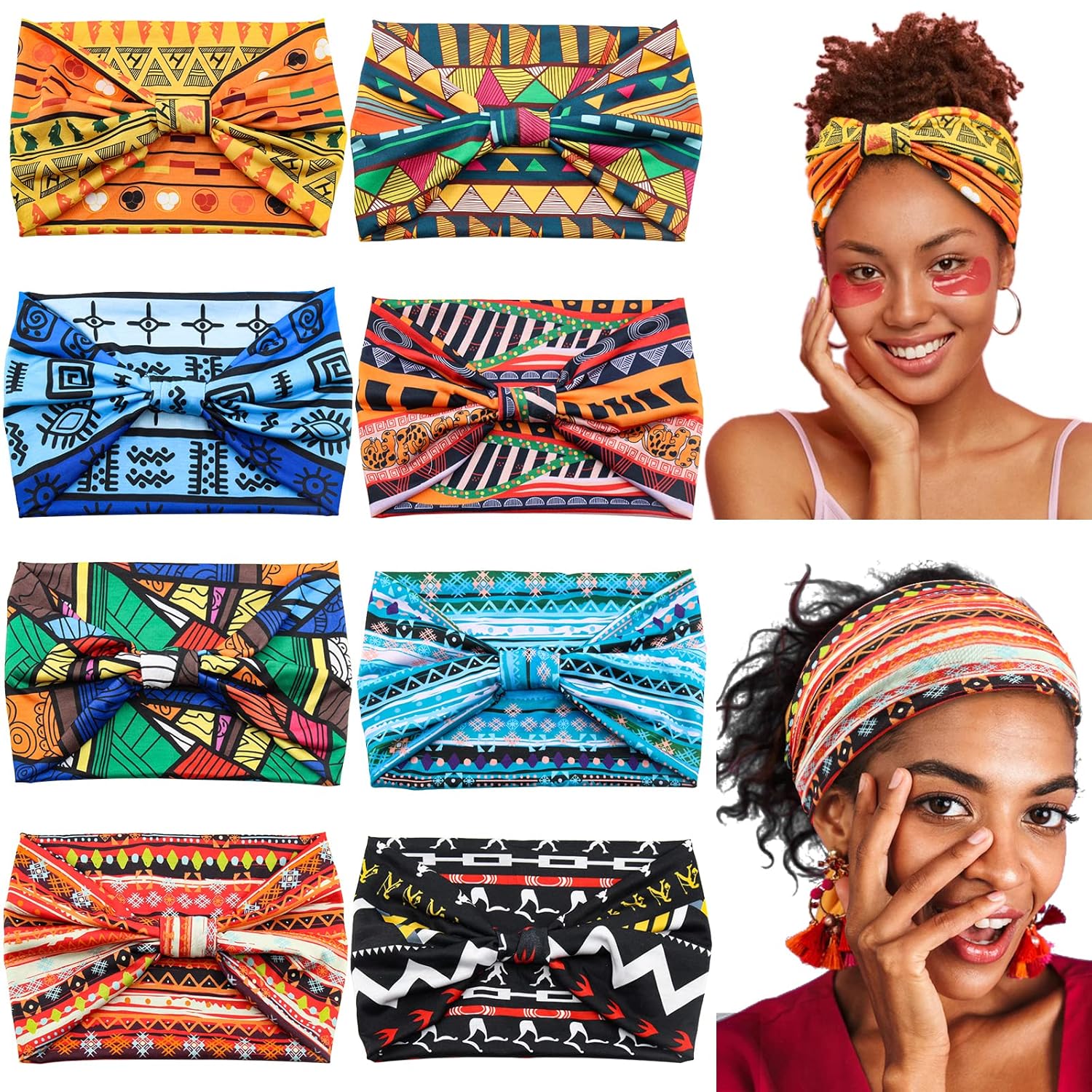 Yeshan Women's Wide Boho Knotted Non-Slip Turban Headwraps - Stretchy Bandeau Hair Bands for Sports, Yoga, Workouts, Pack of 8