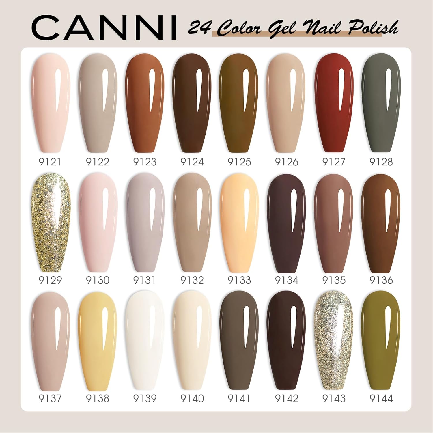 CANNI 30Pcs 9ML Hema-free Gel Nail Polish Set,Nude Brown Red Glitter Gold Gel Polish Kit Soak Off LED Nail Gel Polish Set Nail Art Starter Manicure Salon DIY at Home