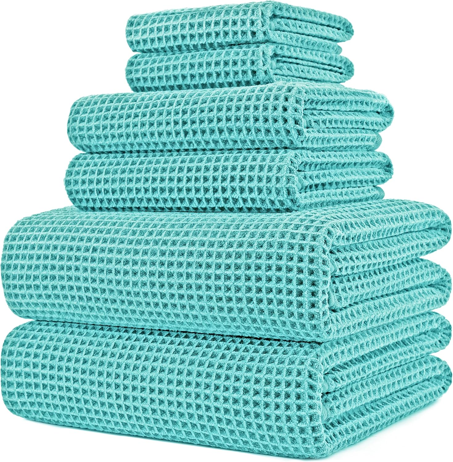 POLYTE Oversize, 60 x 30 in., Quick Dry Lint Free Microfiber Bath Towel Set, 6 Piece (Waffle Weave)