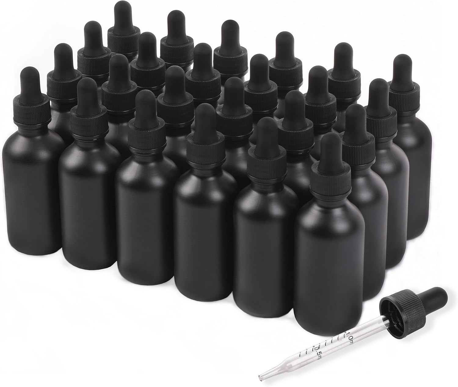2oz Glass Dropper Bottle,Preety Texture Tincture Bottles with Precise Scales Eye Droppe,for All Kinds Of Mixed Liquids,Leak-Proof Design for Easy Travel (Black Frosted-24Pack)
