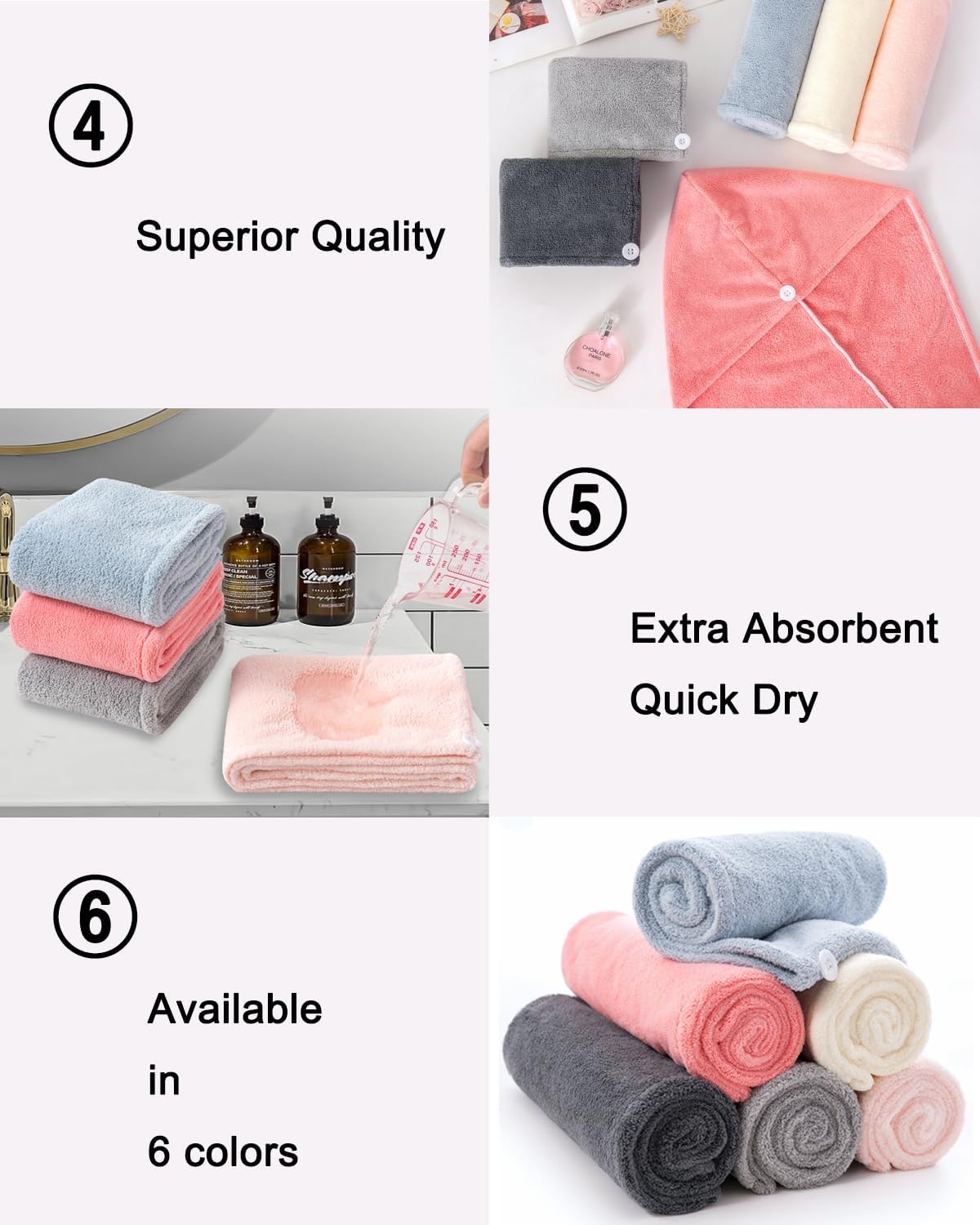 Bath Pre Dry Hair Towel 4-Piece Set Quick Dry Extra Absorbent Lightweight Turban with Button Hair Drying Wrap Bathroom Girl Friend Family Mom Gift