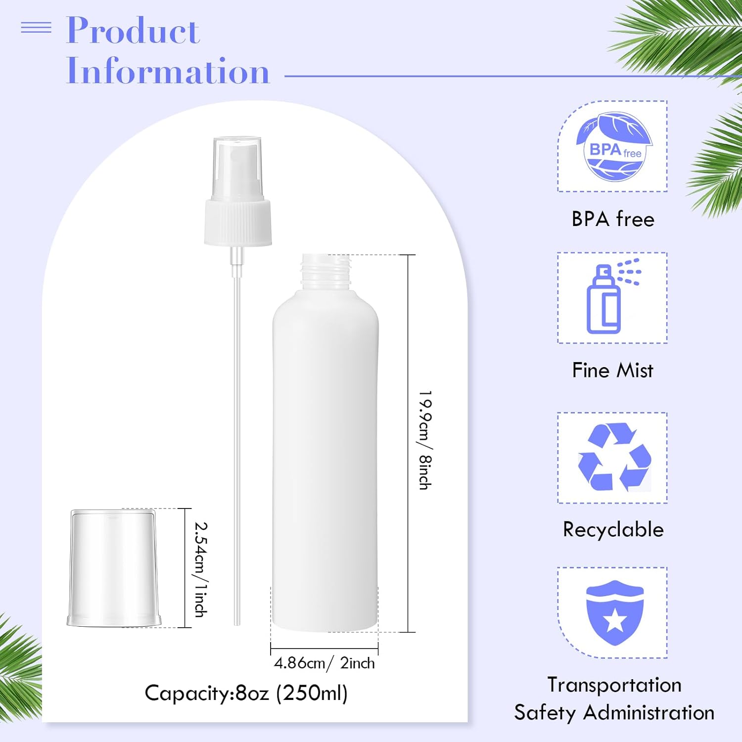 - Portable and Handy: the size of the mist bottle sprayer is about 19.9 x 4.86 cm/ 7.83 x 1.91 inches, and the capacity is about 250ml/ 8oz, which does not take up much space when you need to carry it out in your bags or luggage