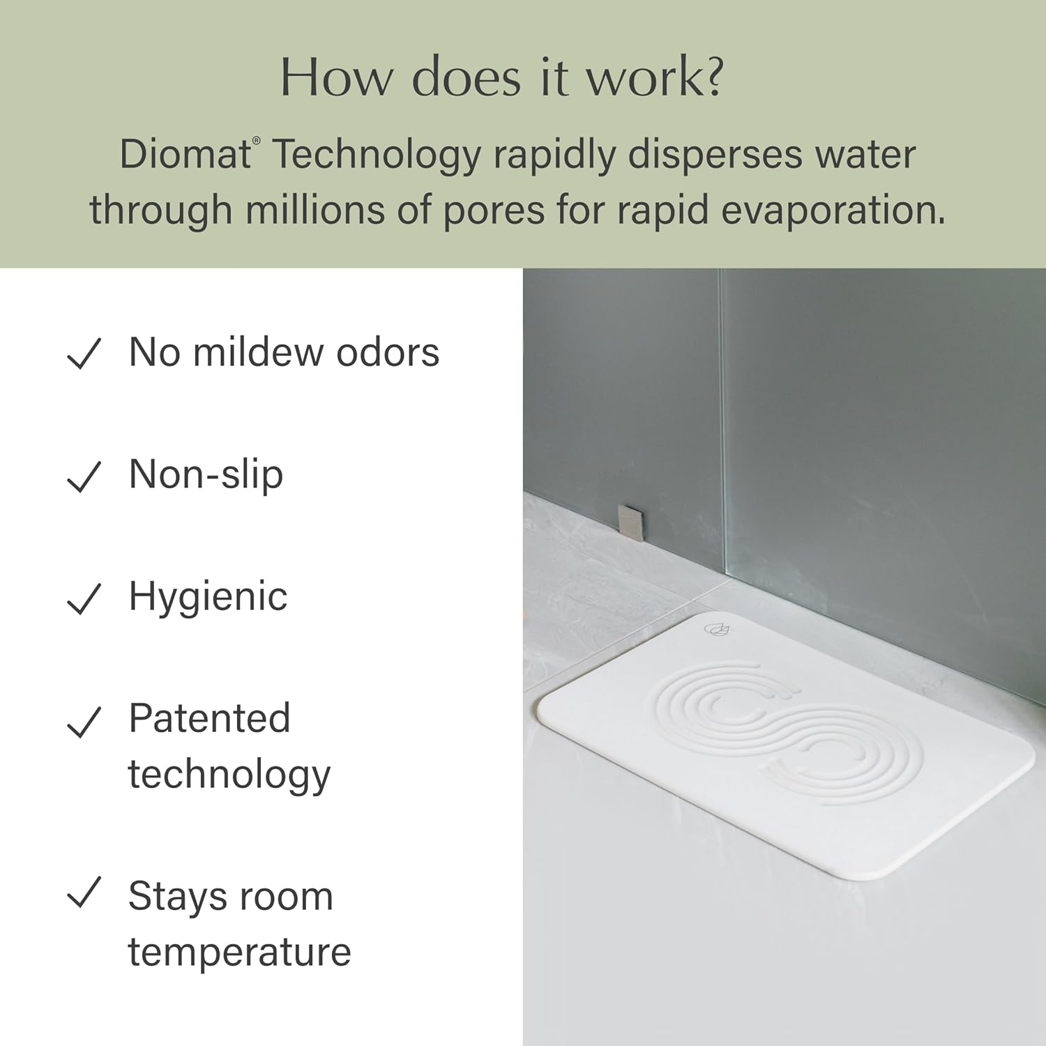 - QUICK-DRYING DIATOMACEOUS EARTH: Our Diatomaceous Earth Stone Bath Mat absorbs up to 150% of its weight in moisture that evaporates within seconds. This ceramic-like material feels like natural stone, offering a hygienic and durable alternative to traditional bath mats.