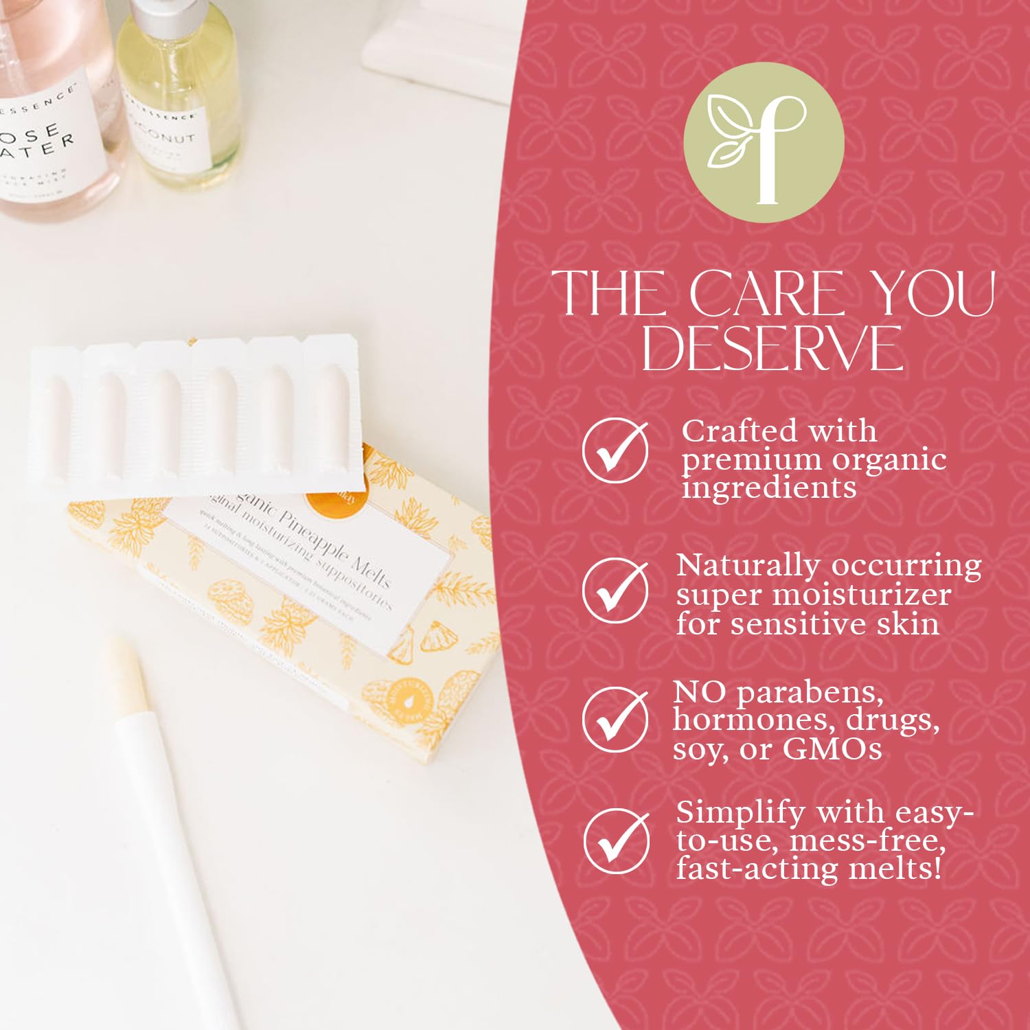 Femallay Organic Vaginal Moisturizing Suppositories – Pineapple 2 Pack – 100% Natural Relief for Dryness, Odor & Daily Feminine Discomfort – 14 Count + Applicator