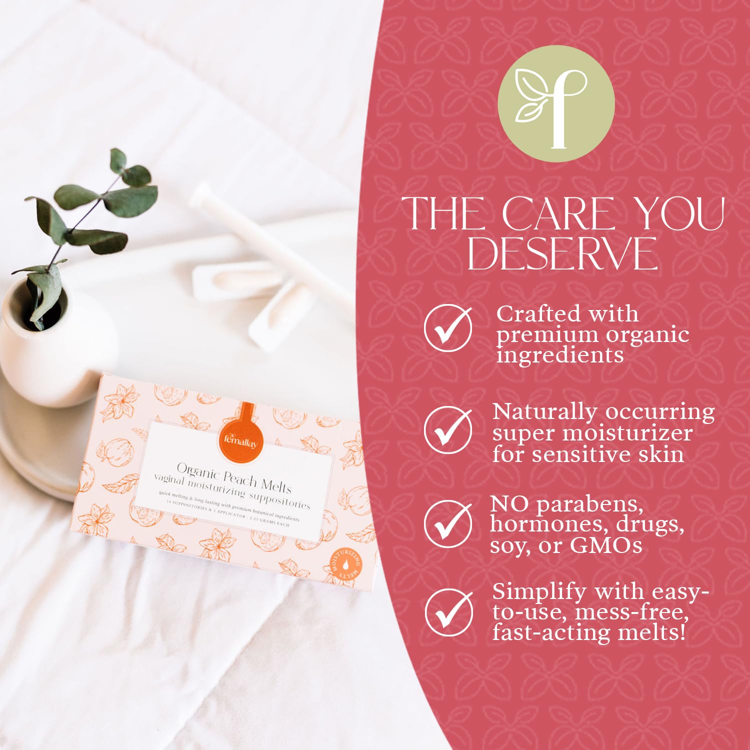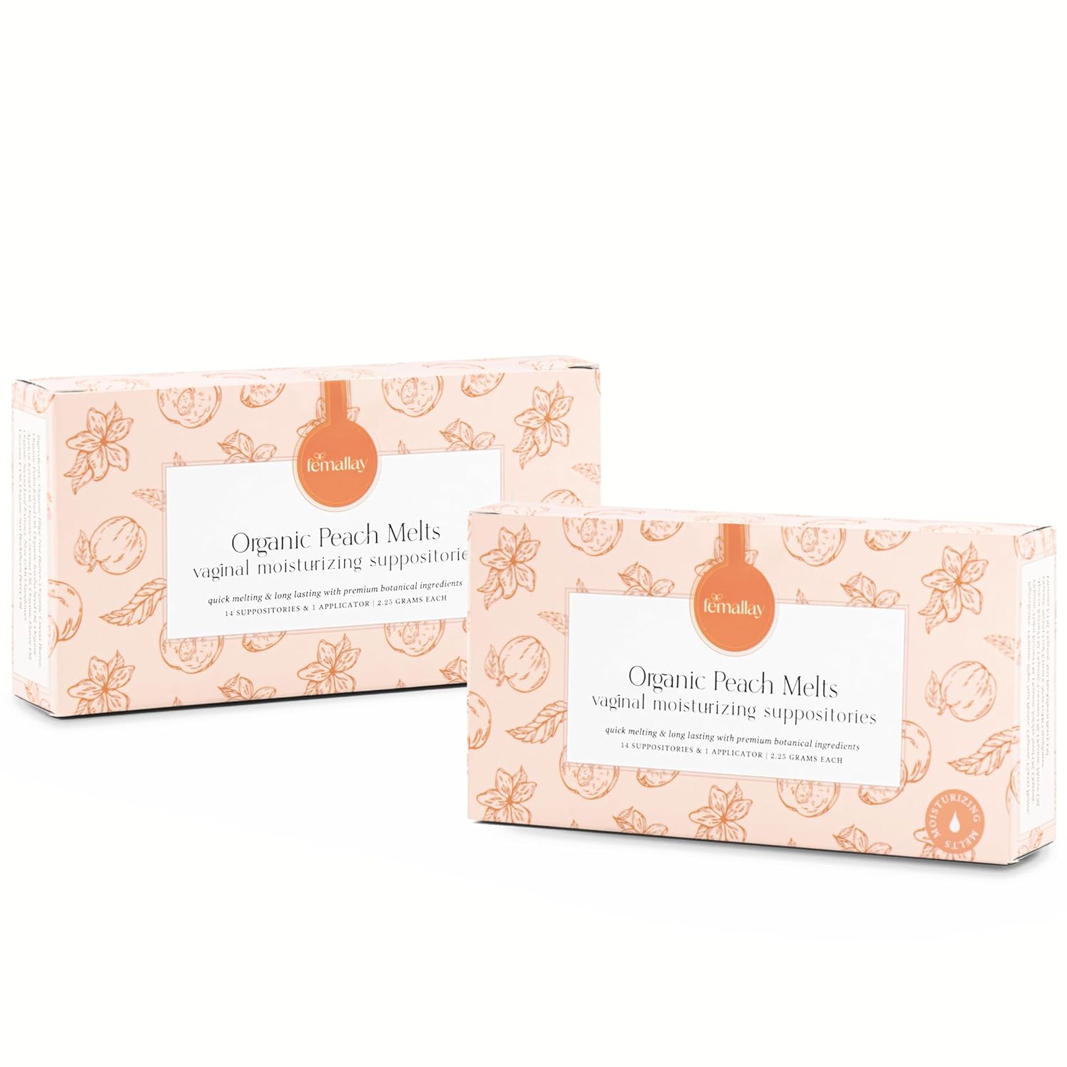 Femallay Organic Vaginal Moisturizing Suppositories – Peach 2 Pack – 100% Natural Relief for Dryness, Odor & Daily Feminine Discomfort – 14 Count + Applicator