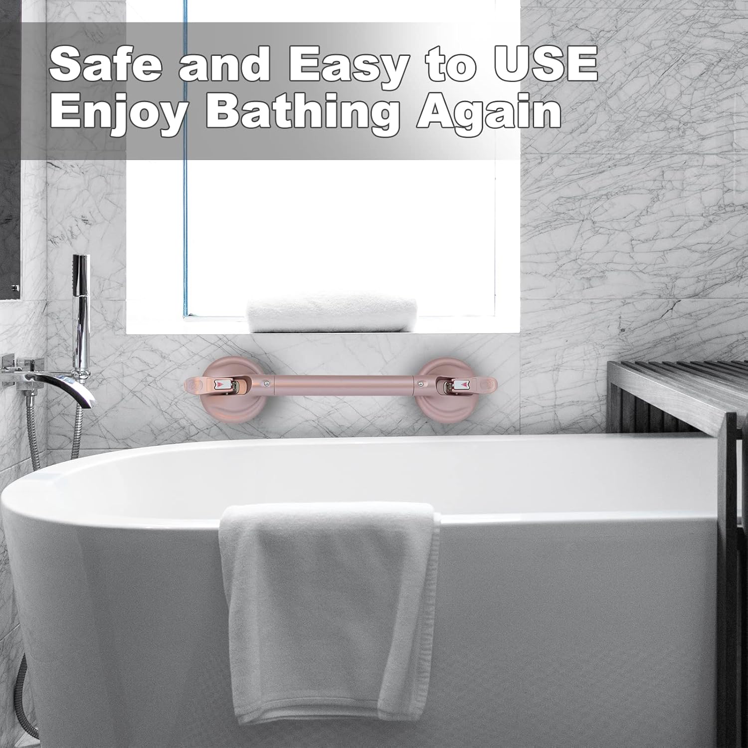 Heavy Duty Suction Shower Grab Bar - Toilet Bathroom Bathtub Safety - Shower Handles, Suction Cup Power Up to 250 LB, Perfect for Elderly Seniors18.5 Inch, Rose Gold