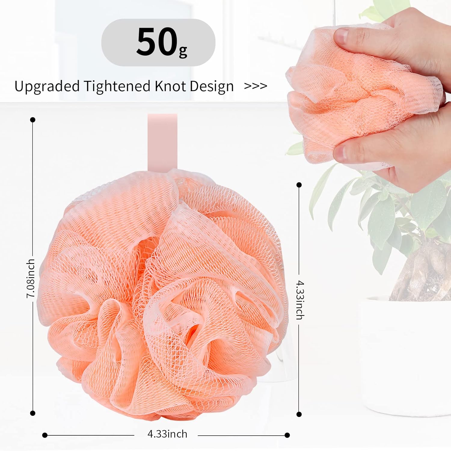 - The Dense and fluffy mesh structure of the bath sponge creates a rich lather with very little body wash or soap, also save more shower gel or soap.