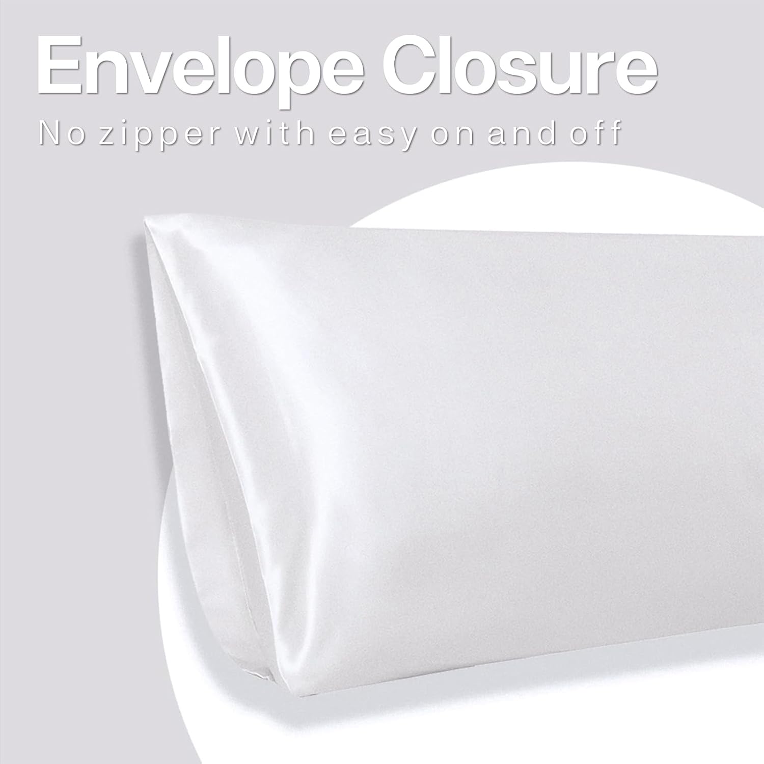 MR&HM Satin Body Pillow Cover, Soft and Breathable Body Pillow Case with Envelope Closure, Cooling and Silky Long Pillowcase for Hair and Skin,Grey (20x54, White)