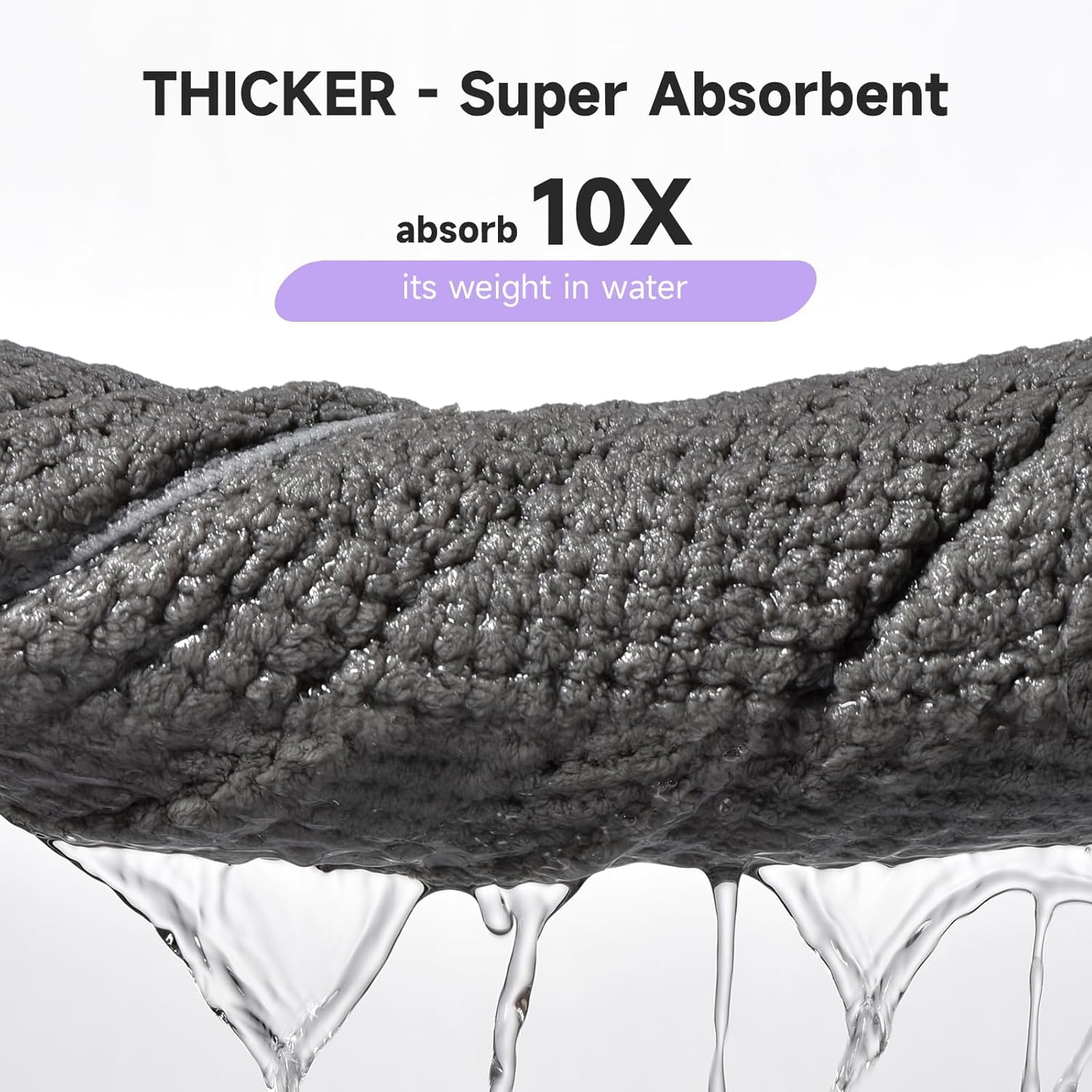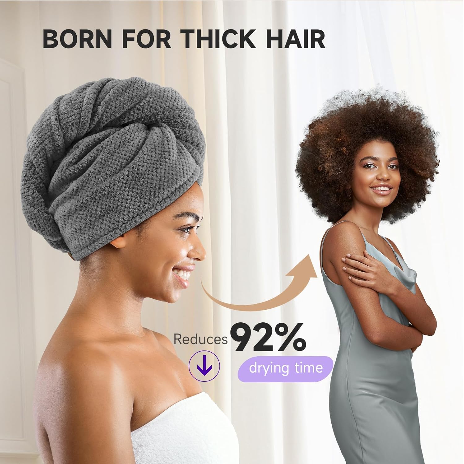 - Ultra Absorbent Towel - Dry Hair Faster: Made of upgraded thickened material, Umisleep microfiber hair towel wrap increases fabric absorption area, which can absorb excess water quickly, and dries hair 92% faster. Shape for you who are tired of those loosely woven, less absorbent towels and are looking for an enduring thickness hair drying towels. Our hair towels for women help you get out the door faster