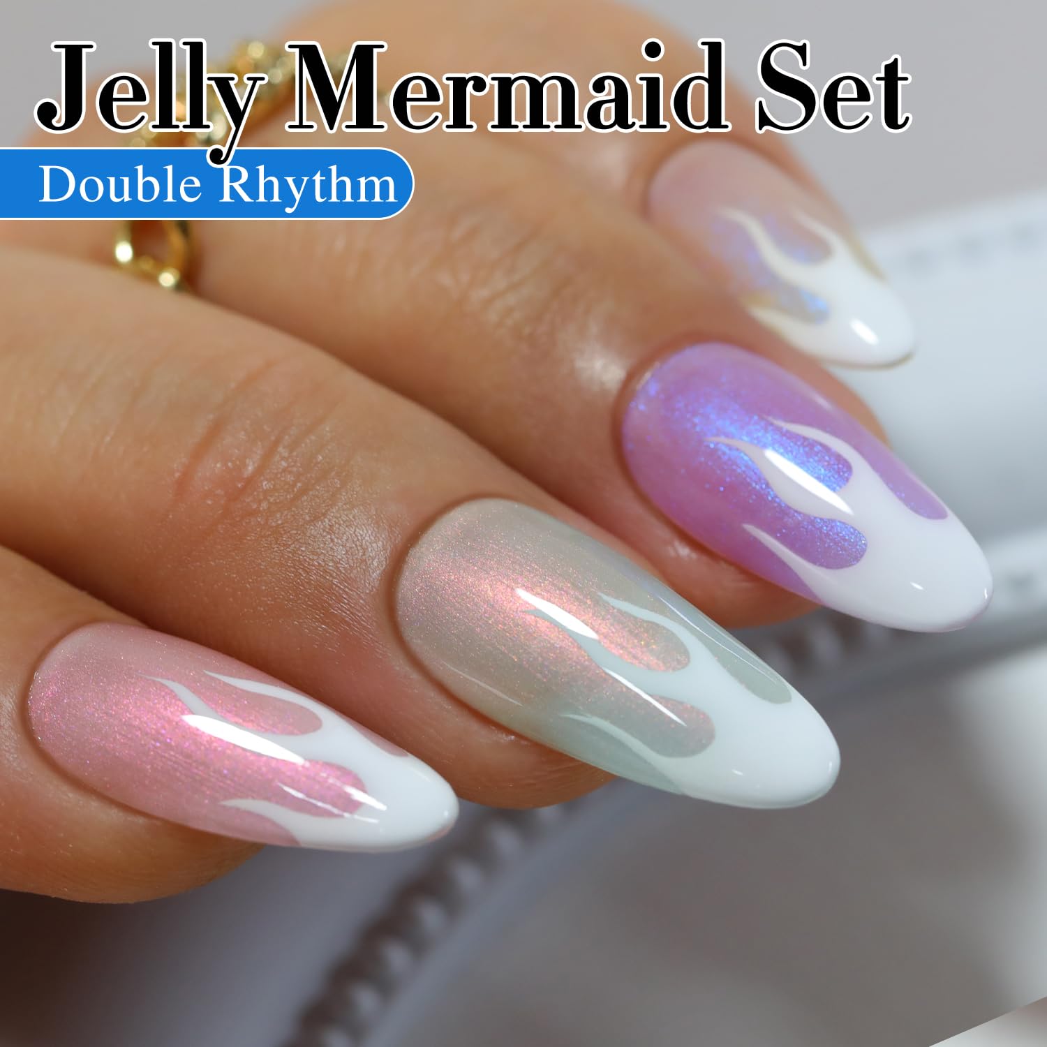 Double Rhythm Jelly Sheer Gel Nail Polish Set of 6 Colors Baby Light Pastel Milky UV Nail Polish Starter Kit Art DIY Salon Home (Mermaid White Pink Blue Green Yellow Purple-Kit8)