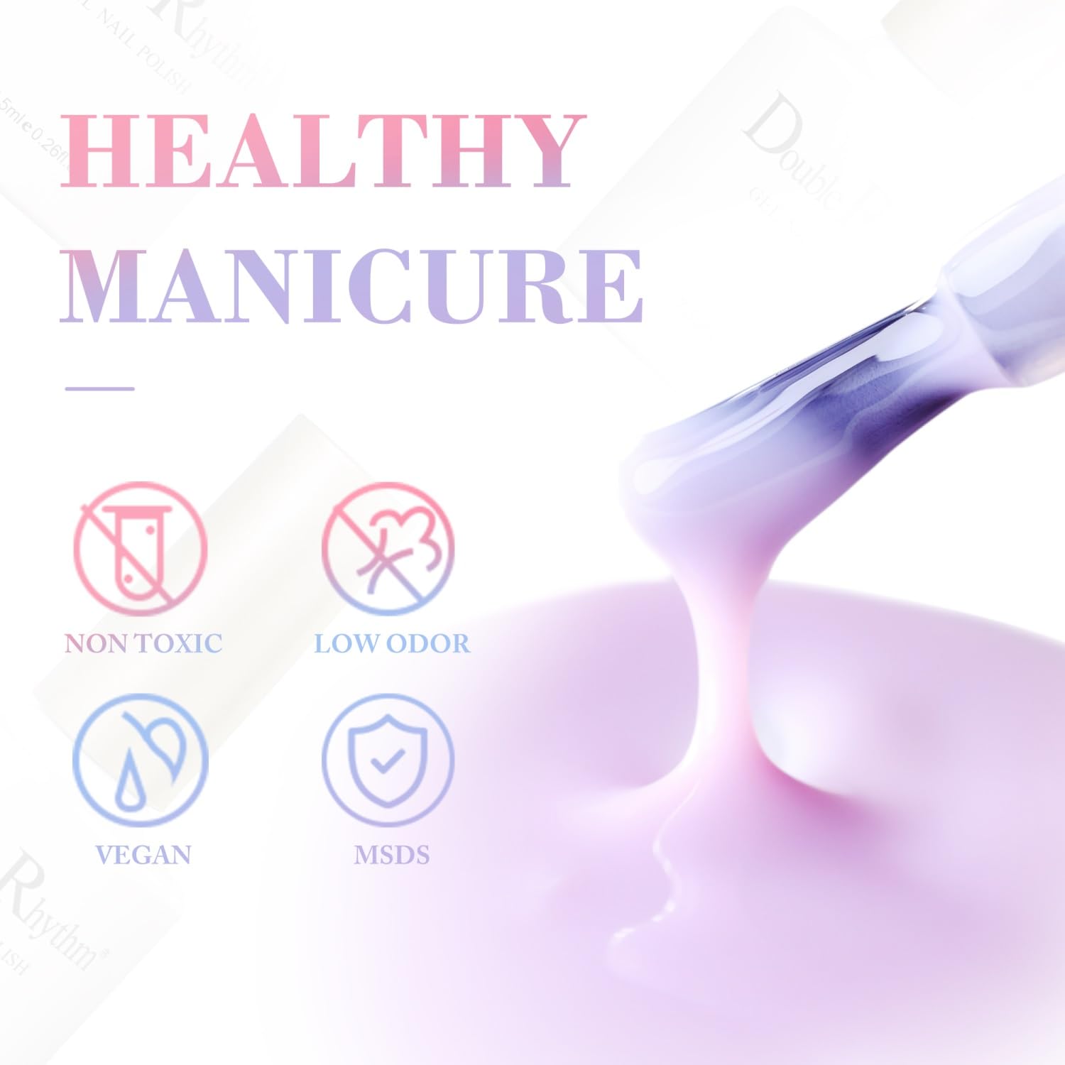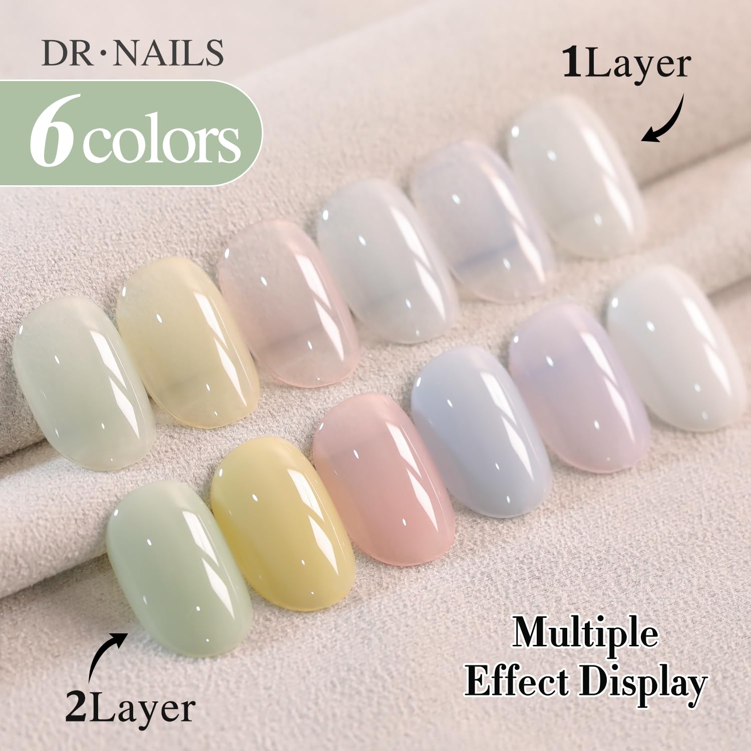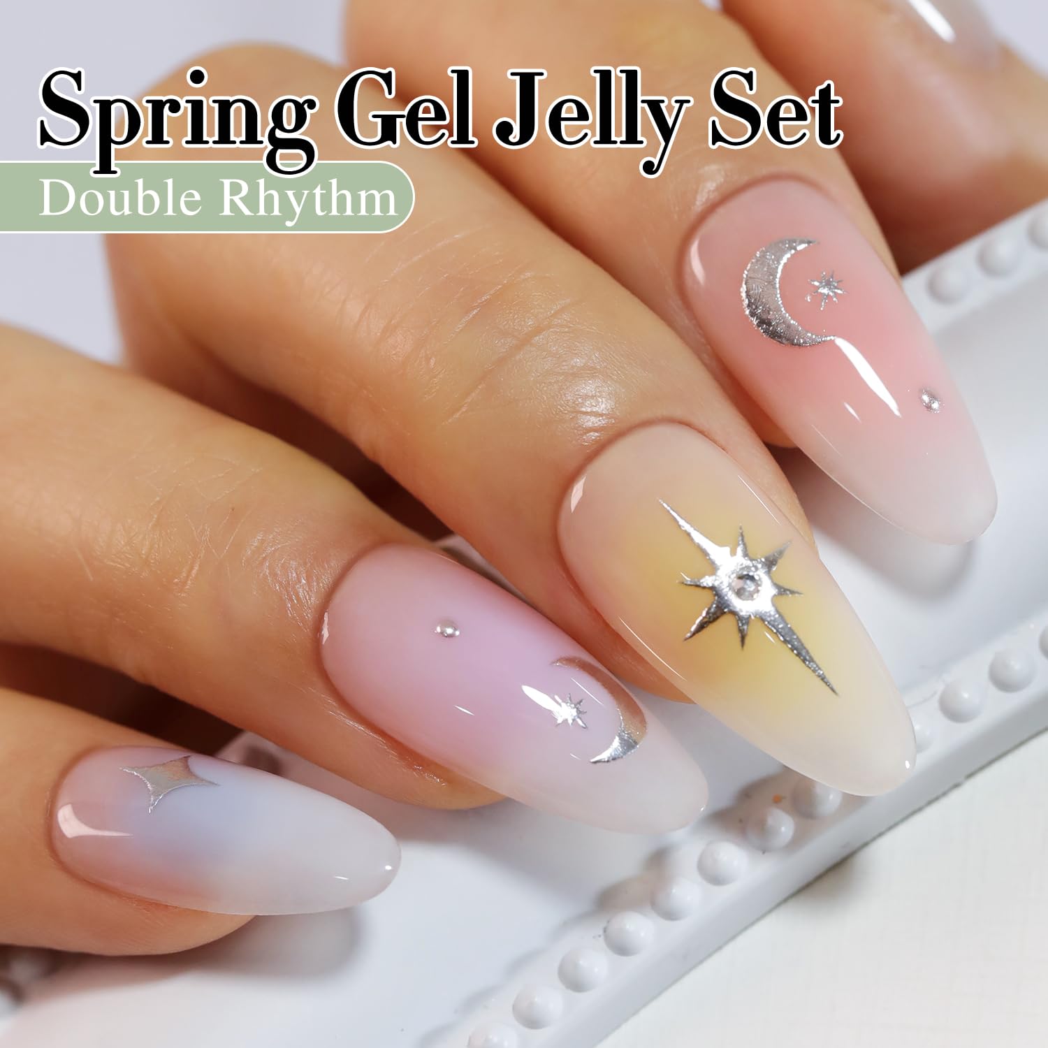 Double Rhythm Gel Nail Polish Set of 6 Colors Baby Light Pastel Milky Nail Polish Starter Kit Art DIY Salon Home (Jelly Sheer White Lilac Blue Pink Yellow Green,Kit 1)