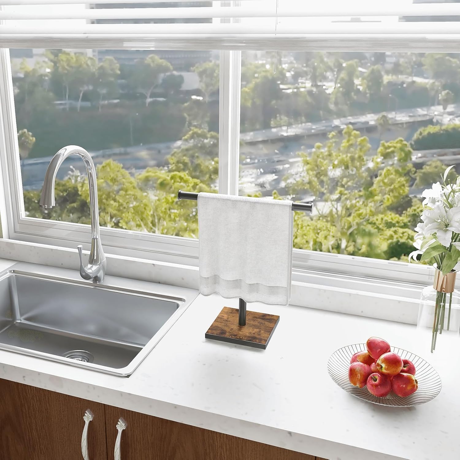 - STYLISH AND FUNCTIONAL DESIGN: The T shape design of our hand towel rack adds a touch of elegance to your bathroom decor while providing a convenient storage solution for your towels. Its sleek lines and rustic wood finish blend seamlessly with any farmhouse or modern interior.