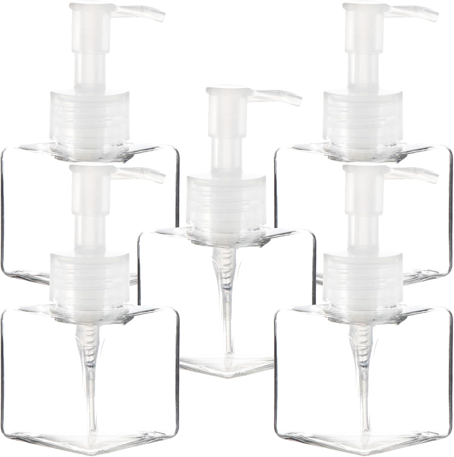 - Pump Bottle Dispensers GREAT VALUE - 5 Pack Clear Plastic Square Pump Bottle Dispensers (4 oz).
