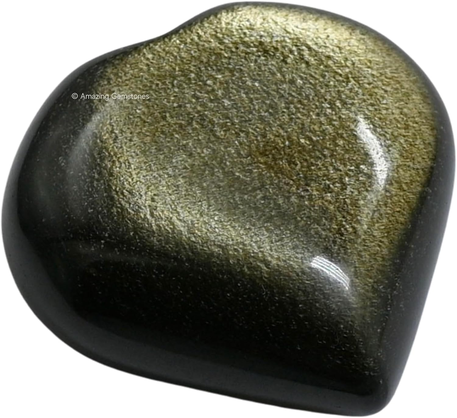 Amazing Gemstone Golden Sheen Obsidian Crystal Heart Palm Stone - Pocket Massage Worry Stone for Natural Body Chakra Balancing, Reiki Healing and Crystal Grid