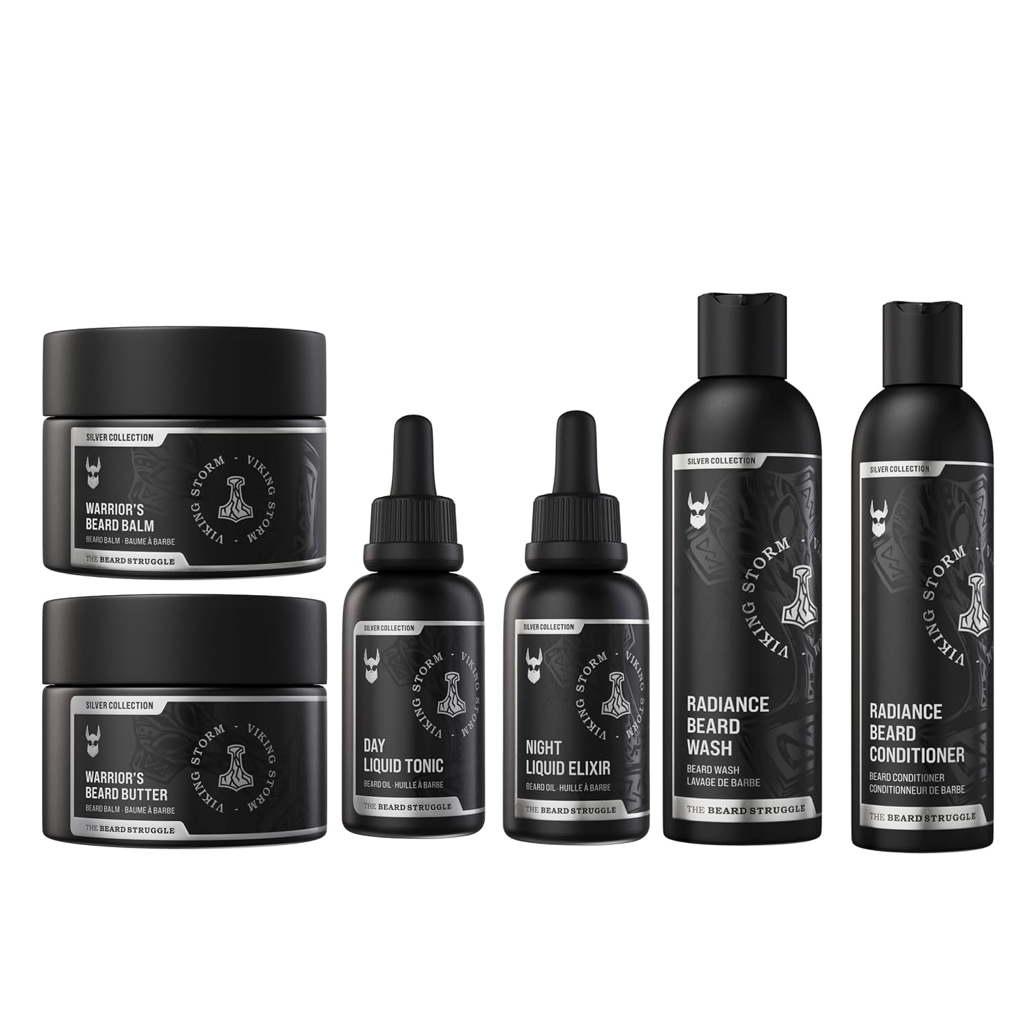 The Beard Struggle Greenlander Bundle Beard Kit - Includes Beard Butter, Beard Balm, Beard Night Oil, Beard Day Oil, Beard Wash & Beard Conditioner - Silver Collection - Viking Storm