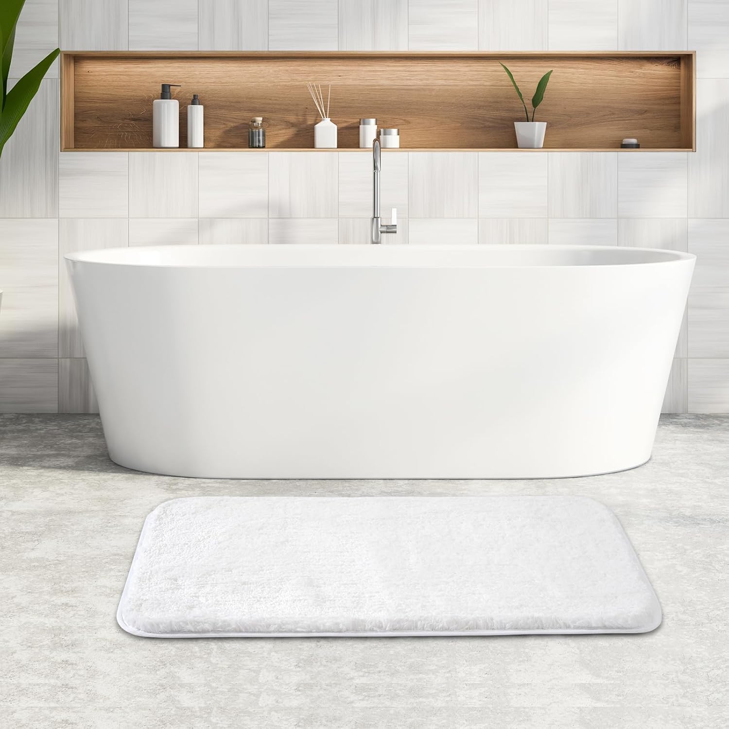 ROSMARUS Shaggy Non Slip Bath Mat 28" X48", Water Absorbent Extra Long Shower Mat, Soft Fluffy Plush Bathroom Rug Machine Washable, White
