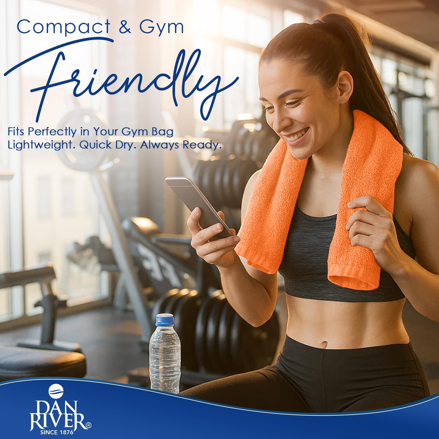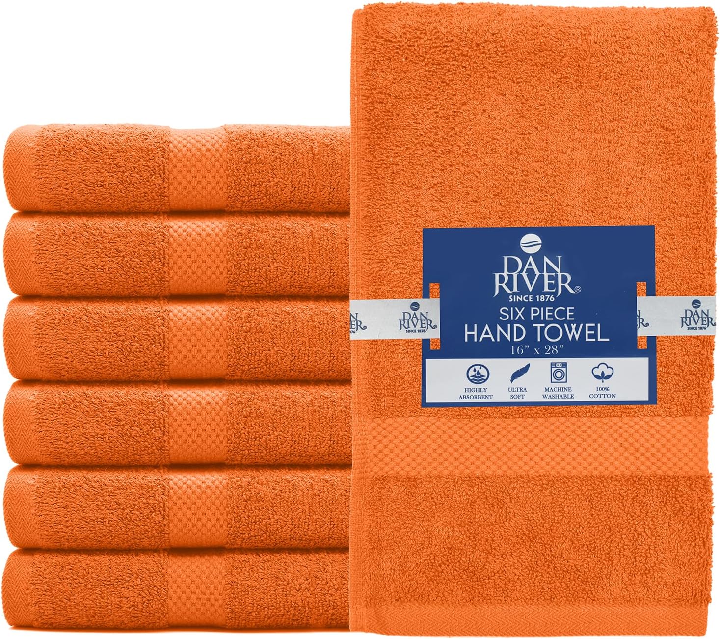 DAN RIVER 6-Pack Premium Hand Towels (16x28 Inches) - 100% Cotton, Ultra Soft, Lightweight, Highly Absorbent Towels for Bathroom, Spa, Gym, Salon, Hotel, and Travel - 550 GSM โ Orange