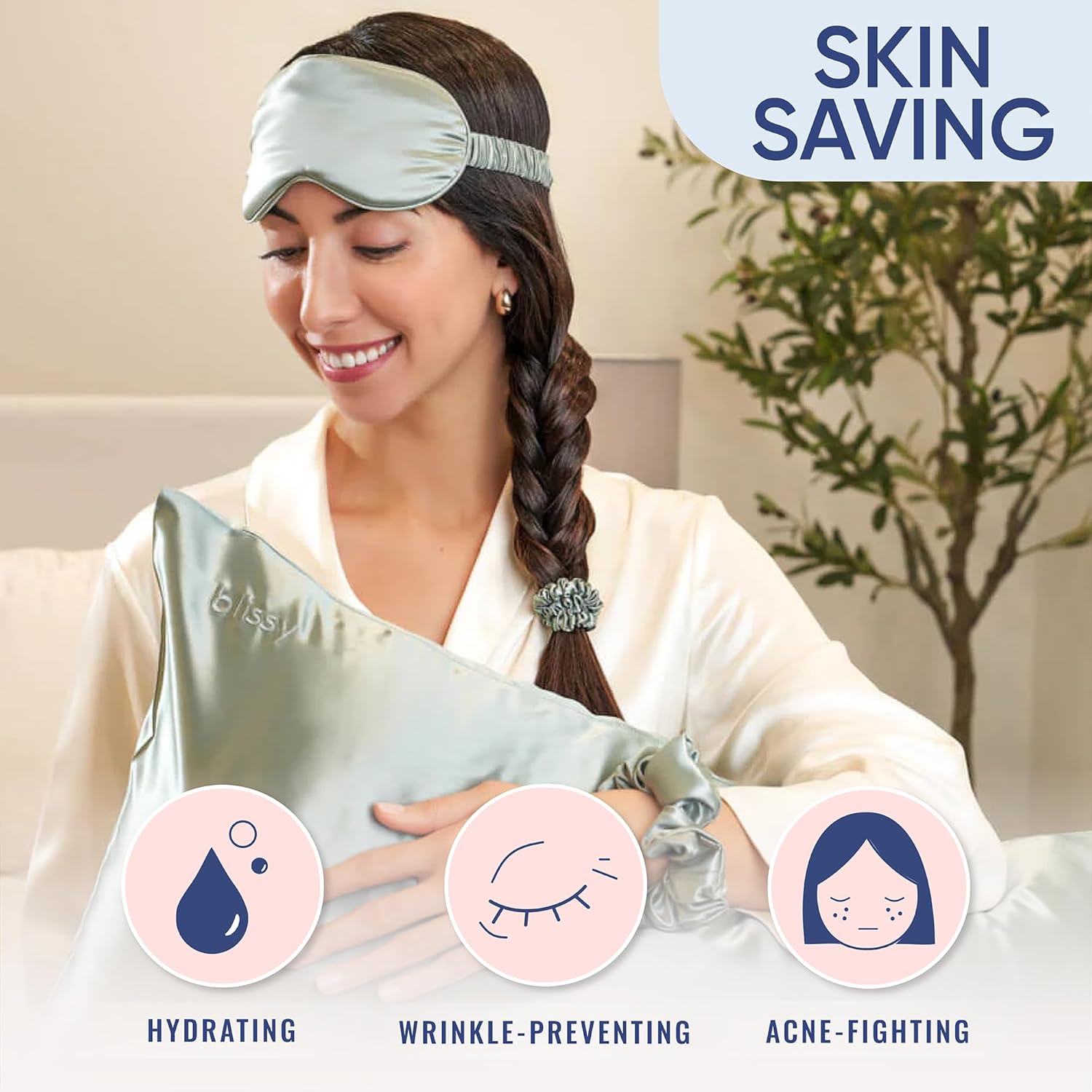 - SKIN SAVING: Why waste time and money on a pillowcase that will only absorb vital skin nutrients? With Blissy 100% Mulberry Silk, your skin will maintain the balanced moisture it needs to form a protective layer. Fight against dryness and acne, two sides of the same coin!