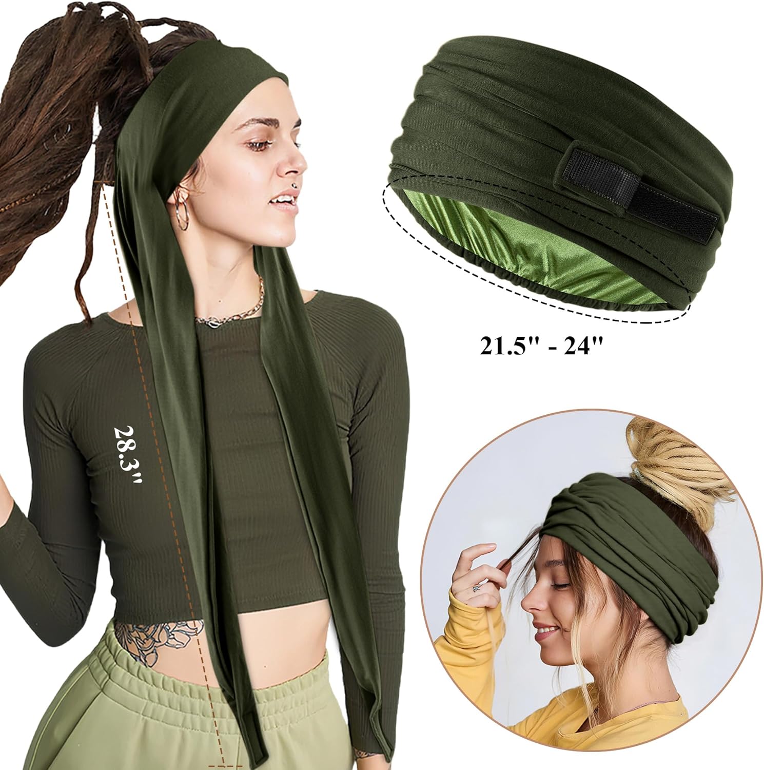 - DAY AND NIGHT FITTED WRAP HAIR PROTECTION: Silk hair wrap has satin lined with a perfect fit, combined with the sweat-proof finish, makes the bonnet even more of a perfect idea to wear at night for sleeping.Wraps the hair in without causing breakage and movement of the hair and dreadlocks, it also protects the hair's natural oils, an excellent match for the LOC and dreadlock accessories.