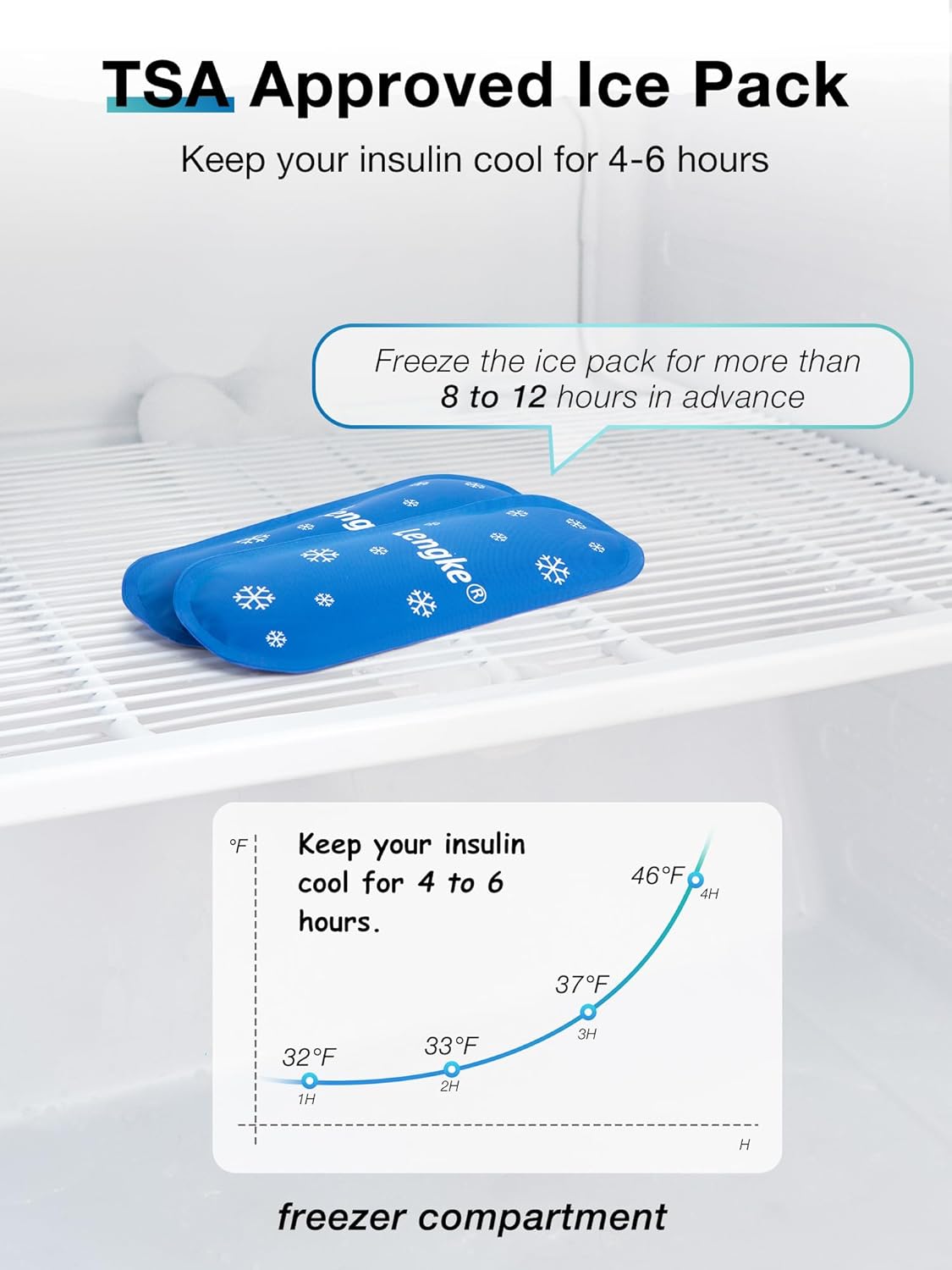 - Reusable TSA Approved Ice Packs - Comes with 2 eco-friendly gel ice packs that are TSA-approved for air travel. Simply freeze the ice packs for 8-12 hours before use, and keep your insulin cool on the go. Ideal for travel ice packs for Insulin.