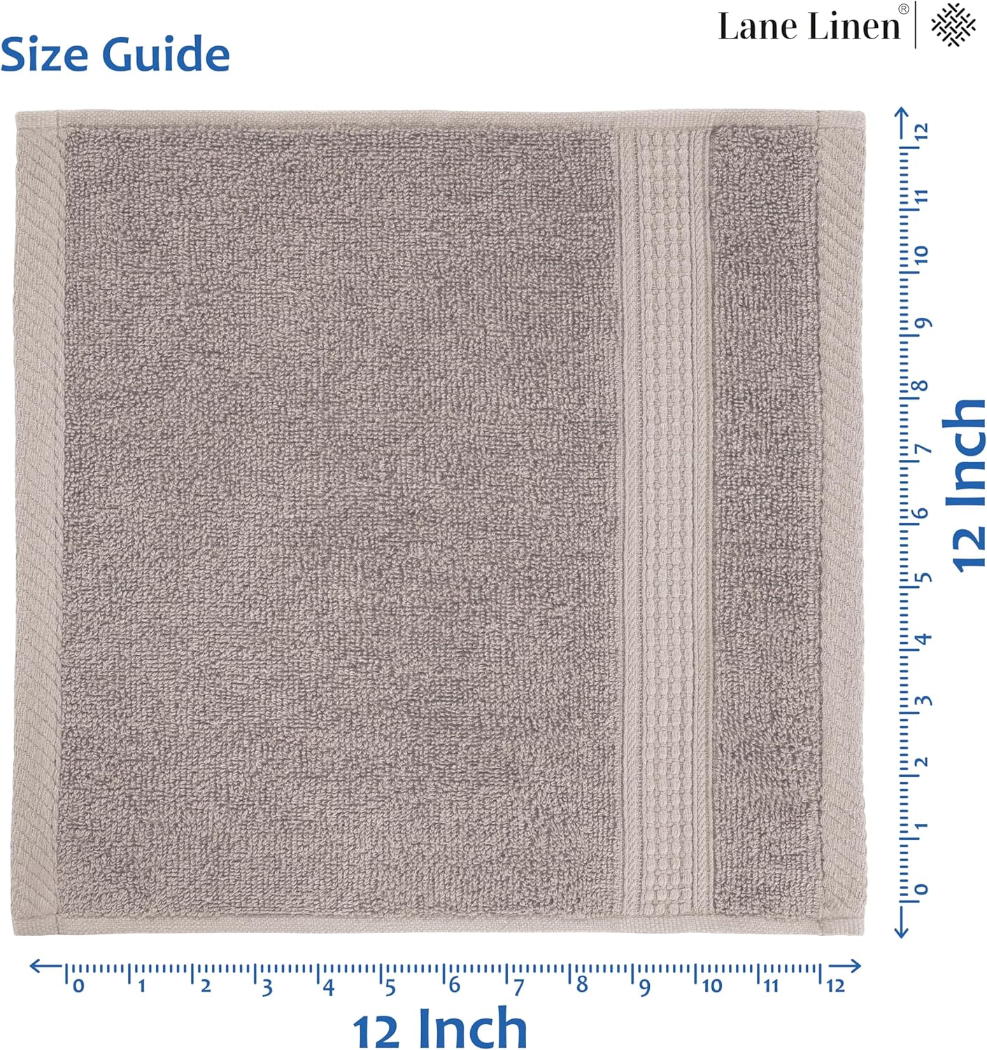 LANE LINEN 100% Cotton Wash Cloths - 12 Pcs - Spa & Salon Quality - Ring Spun Cotton Face Cloths - Soft & Absorbent Washcloths for Body, Beauty, Home, Gym - Fingertip Towels Set - 13"x13", Platinum