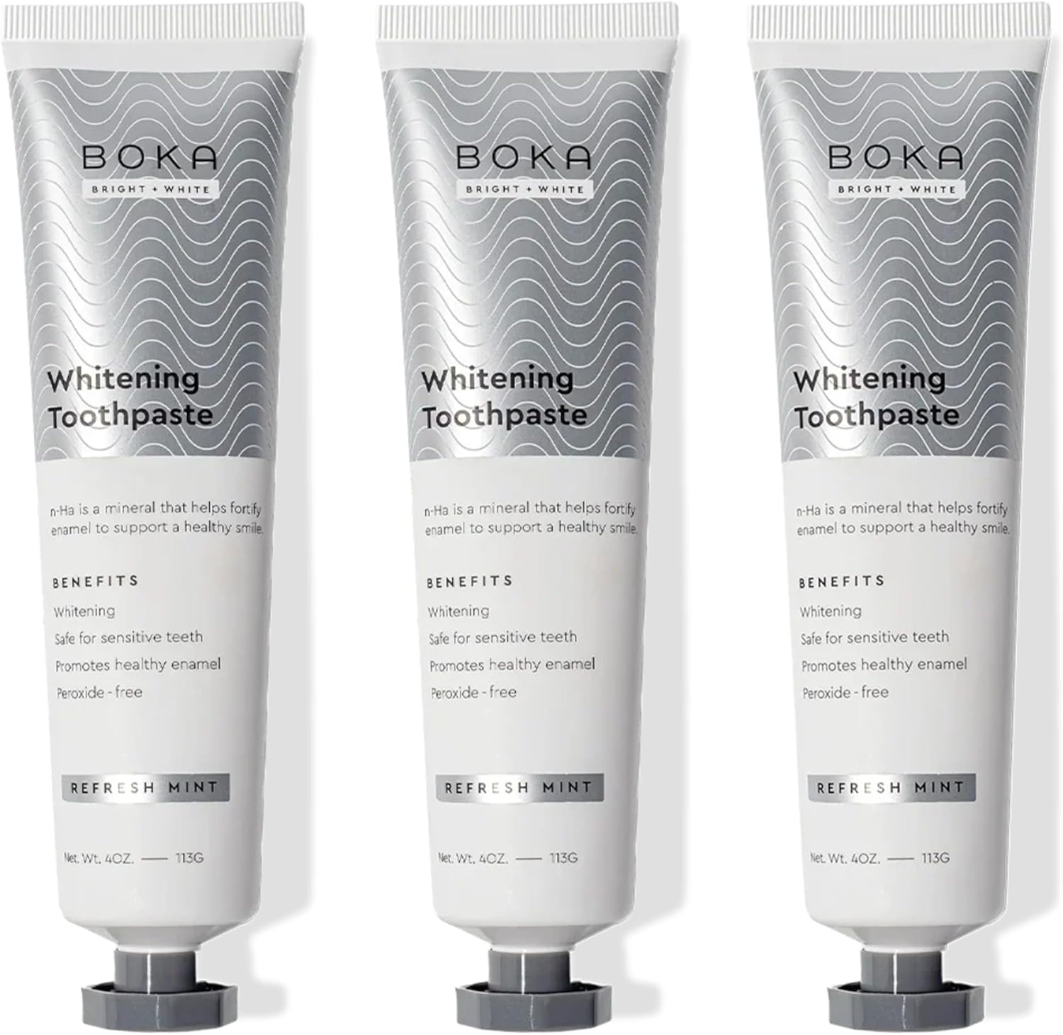 Boka Fluoride Free Toothpaste, Nano Hydroxyapatite Toothpaste, Appropriate for Sensitive Teeth, for Adult, Kids Oral Care - Whitening* Refresh Mint, 4 Fl Oz 3Pk US Manufactured