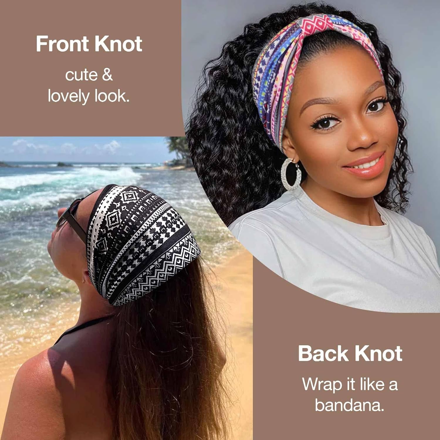 Wide Headbands for Women Knotted No Slip Head Bands Soft Turban Headband Hair Accessories Boho African Solid Color Head Wraps for Women Yoga Workout Pack of 6 (Retro)