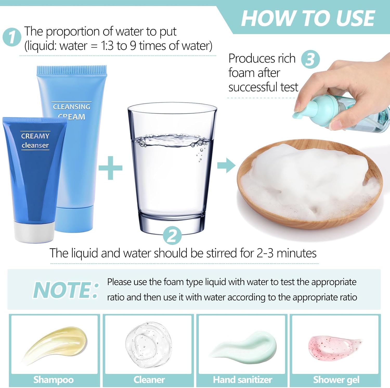 - Efficient and Easy Foaming: the plastic foaming pump bottle contains a green semi-circular foam pump head, which can easily function to produce dense foam and save your skin care products, improving cleaning efficiency; You just need to transfer the facial cleanser into the bottle, add the proportion of water, shake it evenly, and then you can squeeze dense foam, which is convenient for daily use