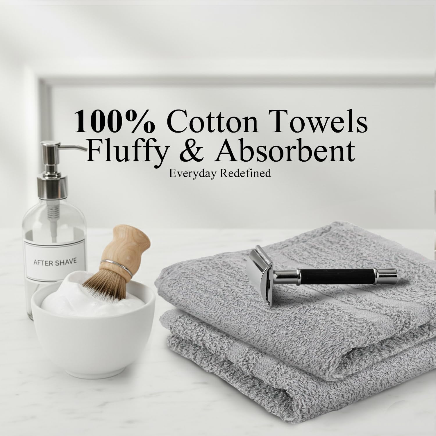 Hand Towels (Pack of 24) Grey Economy Salon Towels - 100% Cotton Spa Towel – 16 x 27 Inches Highly Absorbable, Facial, Gym, Hair Towels Face Towels Bulk
