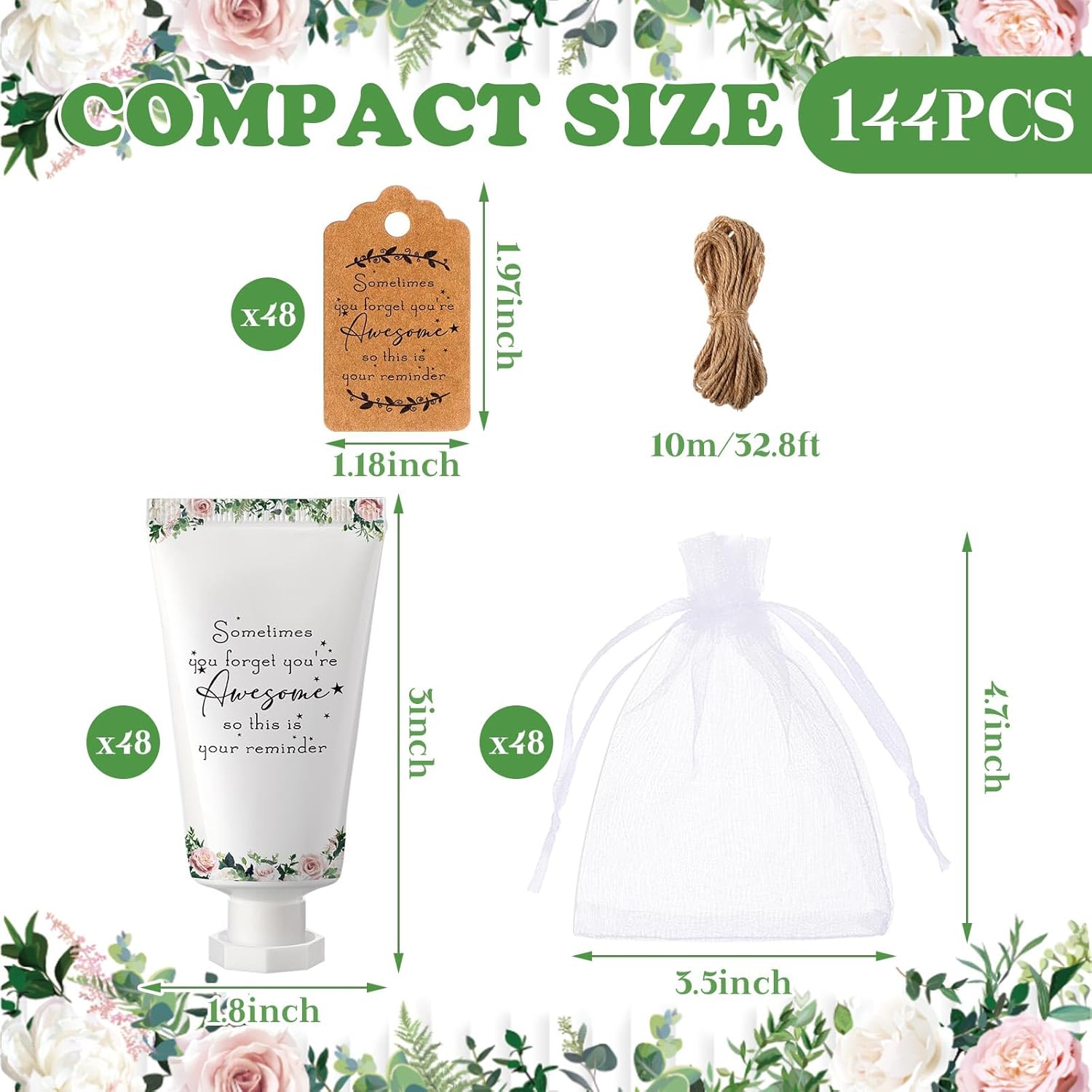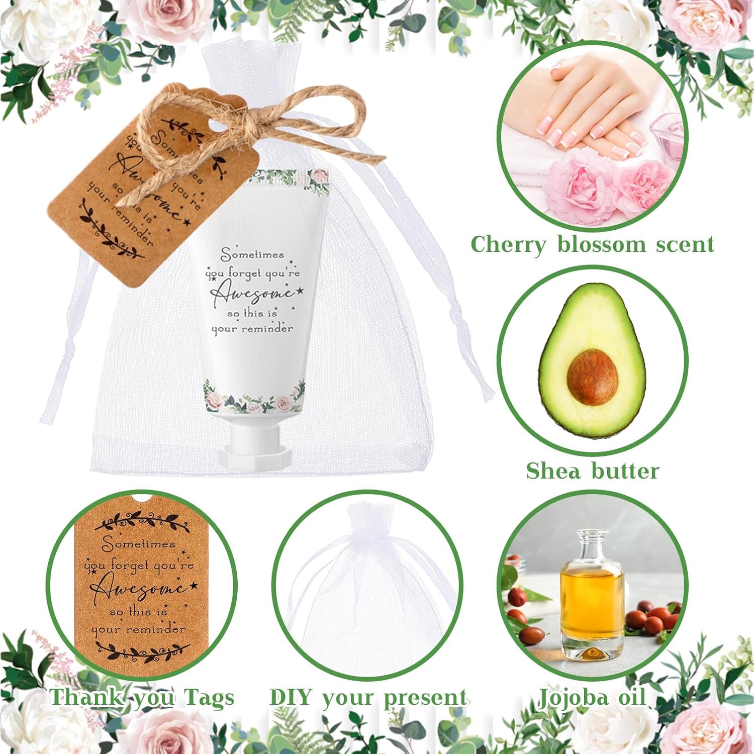 - Hand Cream Gift Set: this gift set is an ideal gift set for women; The scent of blossoms will make you feel comfortable and relaxed, enhance your spirit, and nourish your soul; The set includes 48 hand creams, 48 organza bags, and 48 cards, enough to share with your family and friend during weddings, Mother's Day, Christmas, and other holidays