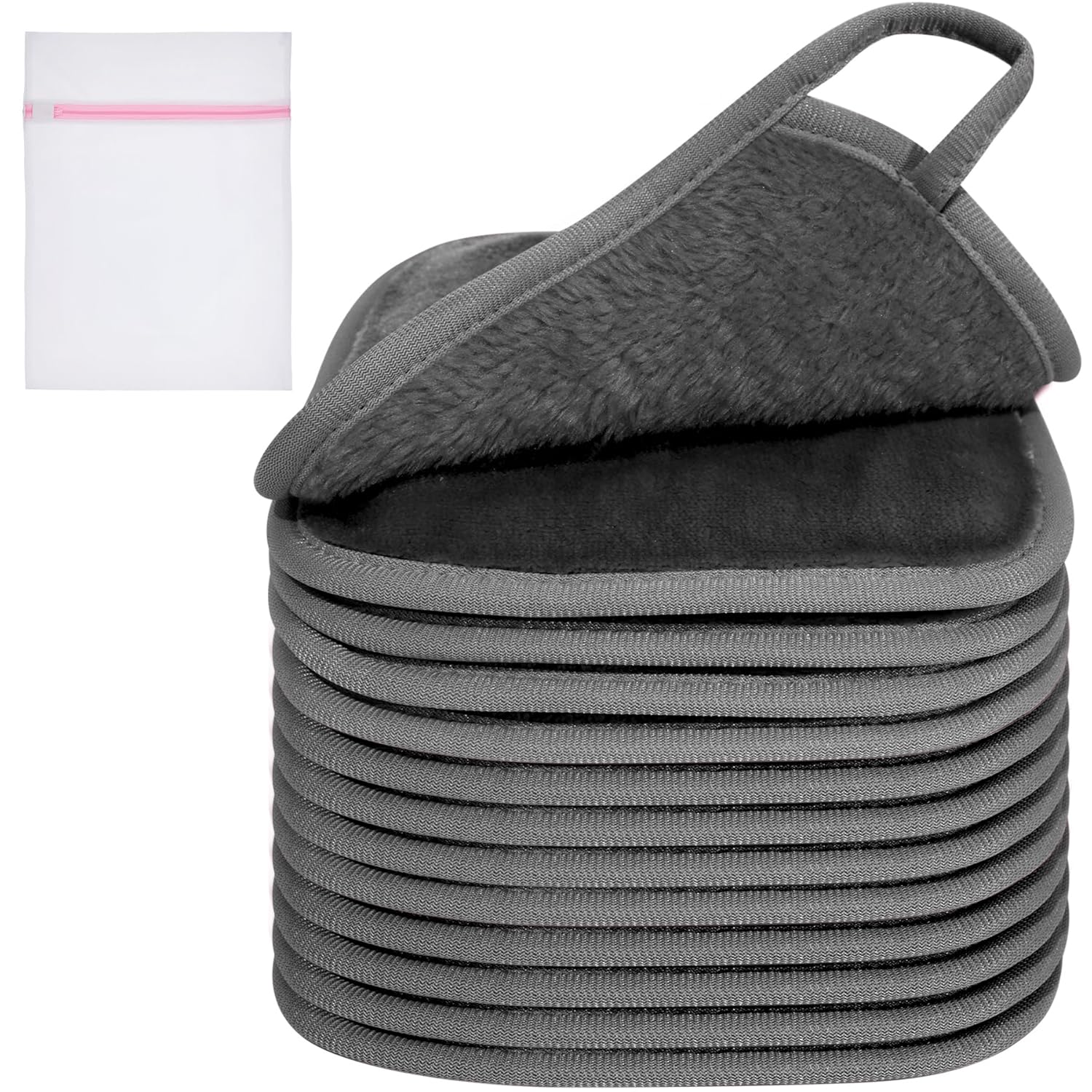 KODAMO Makeup Remover Cloth, 6 inch x 6 inch Reusable Makeup Remover Towels with Laundry Bag, Microfiber Makeup Removal Face Wash Cloths with Just Water, 12 Pack, Grey