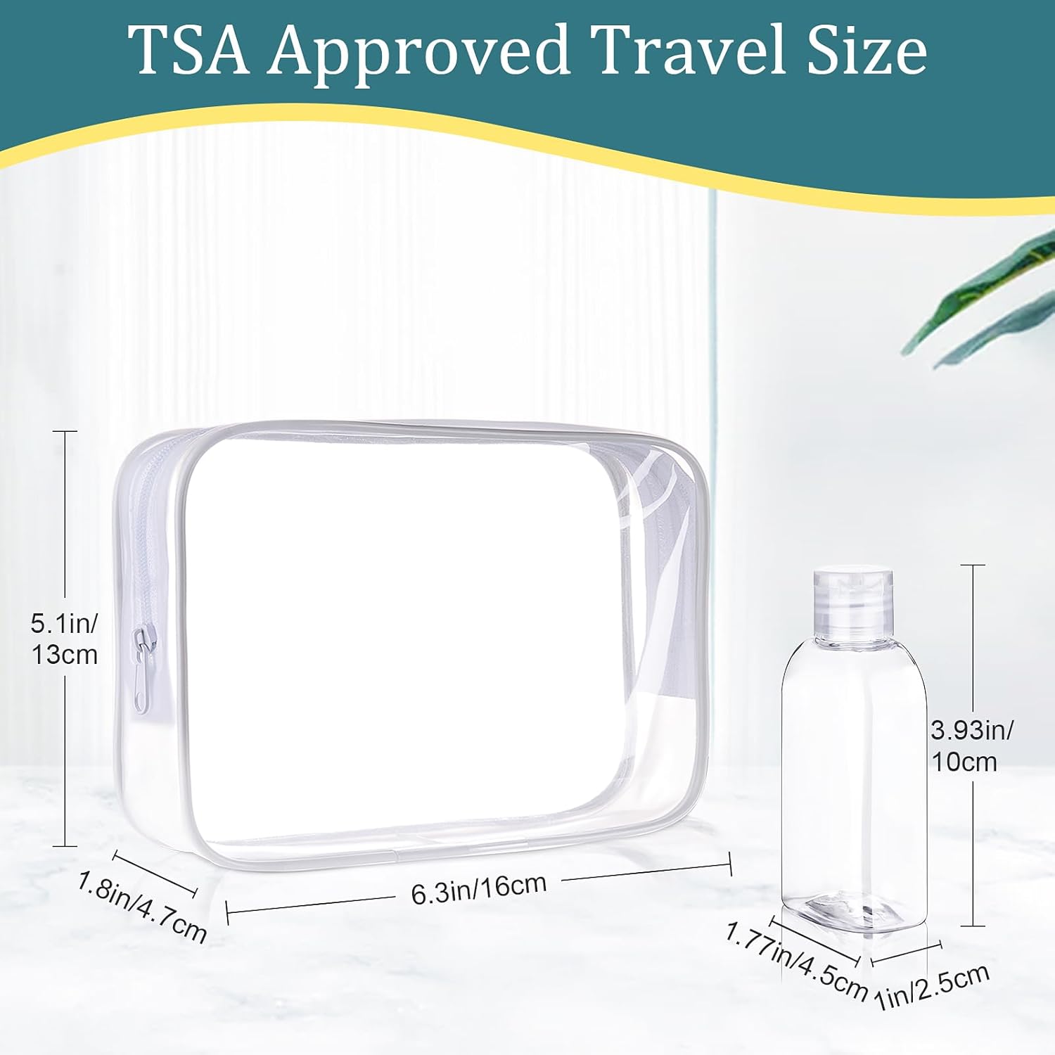 - TSA approved Travel Size Bottles: These 3.4 oz travel bottles are designed to meet the TSA guidelines for carry-on a variety of liquids, making them the perfect travel companion for your favorite shampoo, conditioner, body wash, lotion, and other toiletries; The small plastic bottles can easily fit into any travel bag/purse, so you can bring your favorite cosmetics with you wherever you go.