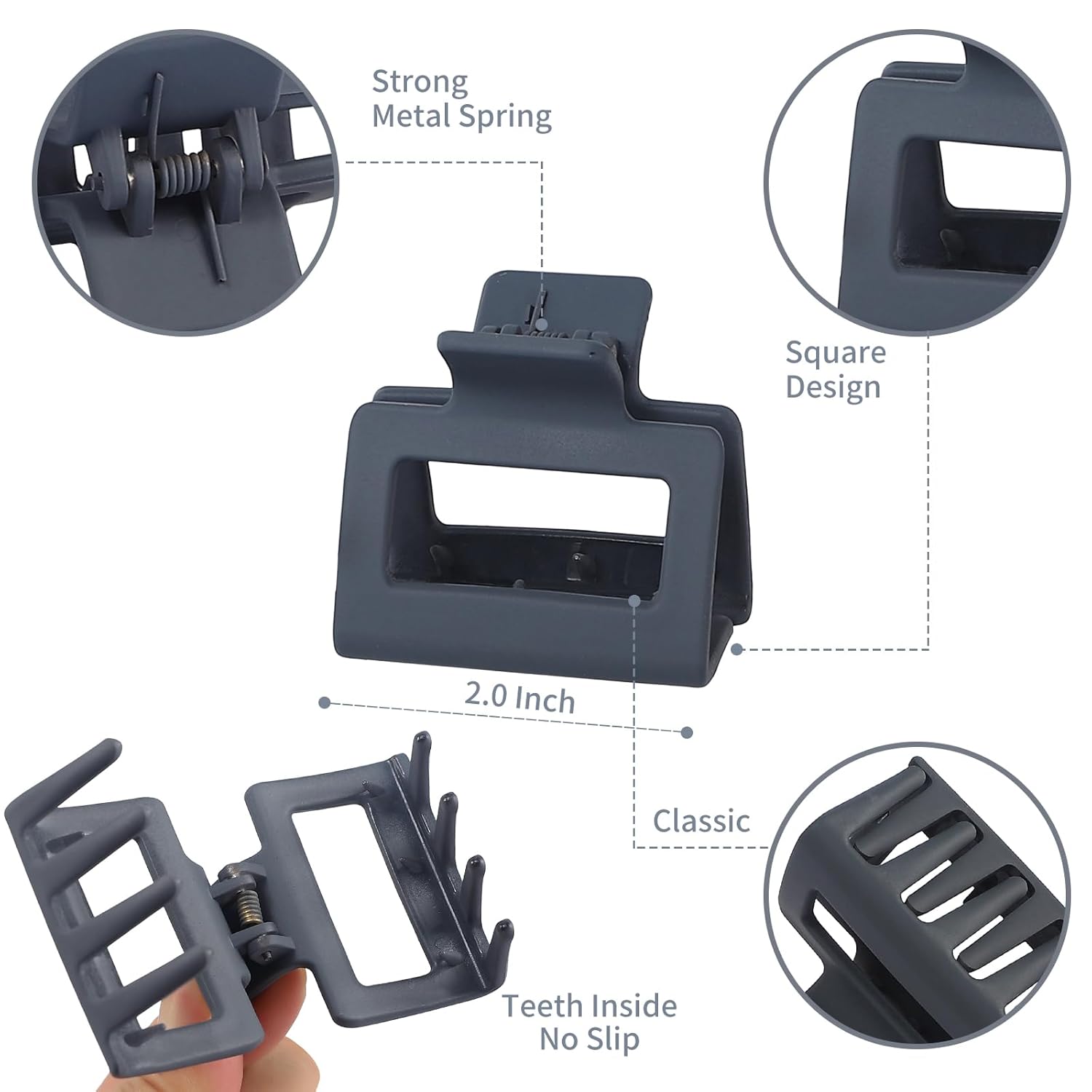 2 Inch Medium Hair Claw Clips 12 Pcs Square Hair Clips for Thin Hair Matte Nonslip Acrylic Banana Jaw Clips Bulk Hair Accessories for women and Girls - Neutral