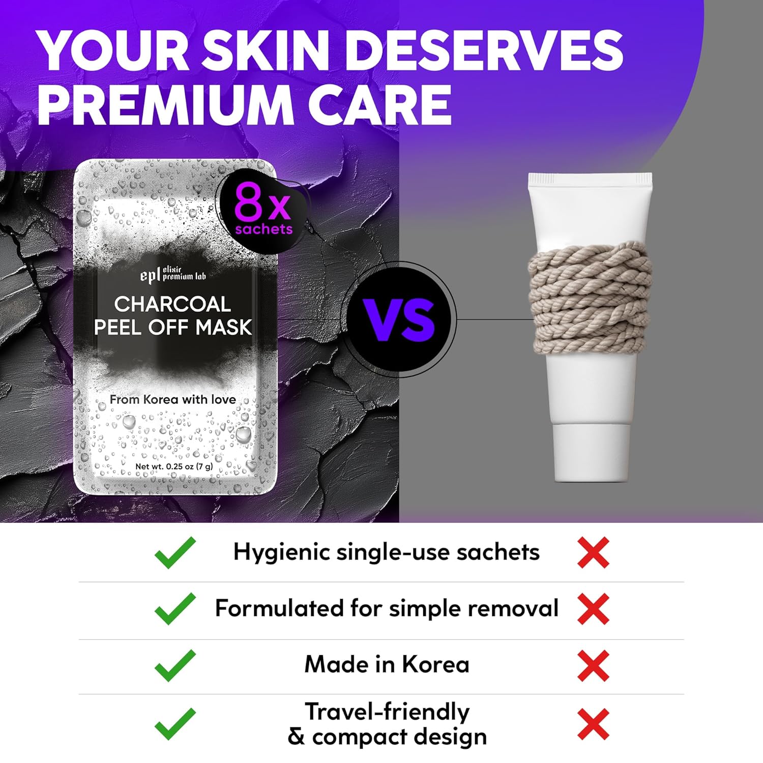 - One-Use Sachets, No Waste: no need to measure each pore mask for blackhead peel off; we divide our peel face masks for skincare into sachets, each containing exact amount necessary to cover your face with one charcoal peel off mask
