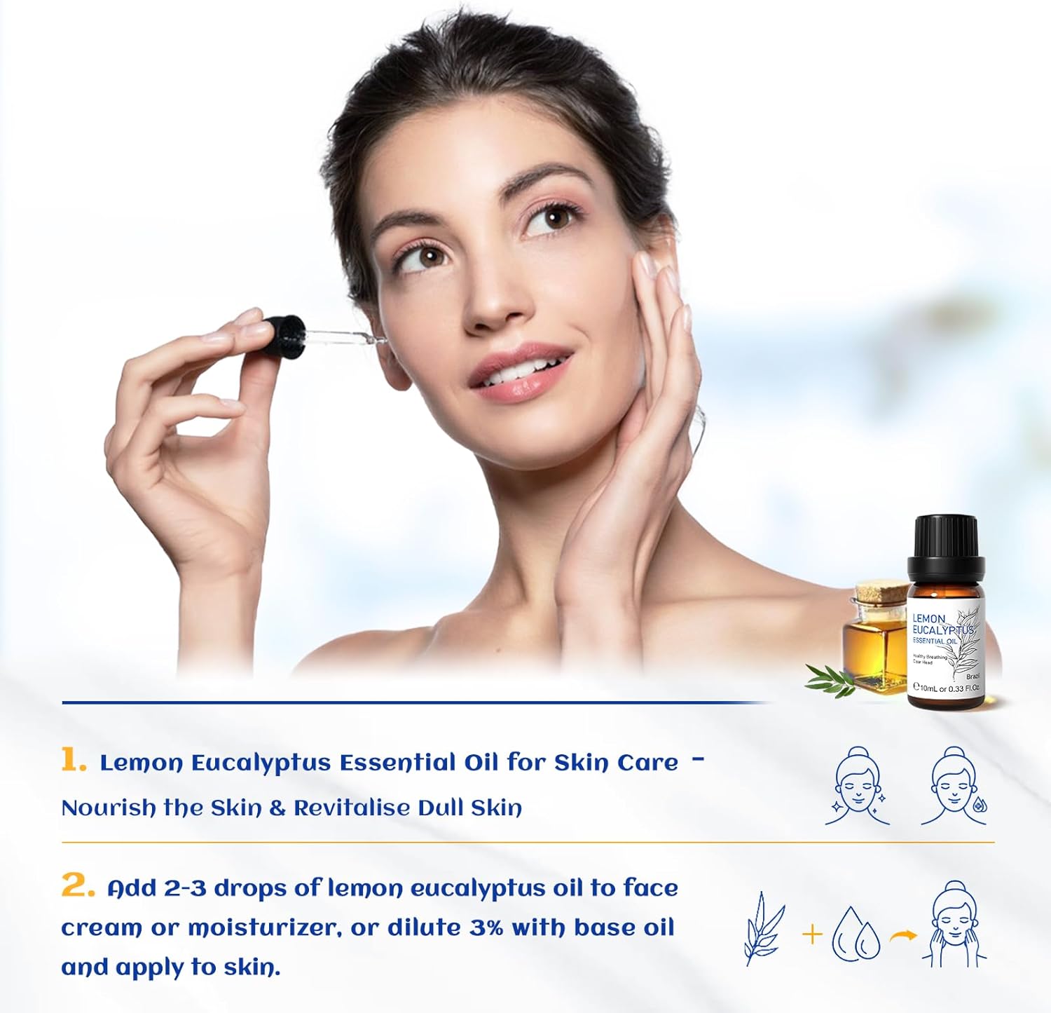 HIQILI Lemon Eucalyptus Oil, for Spary, Diffuser, Indoors, Outdoors, Garden, Yard, 100% Pure Natural - 0.33 Fl Oz