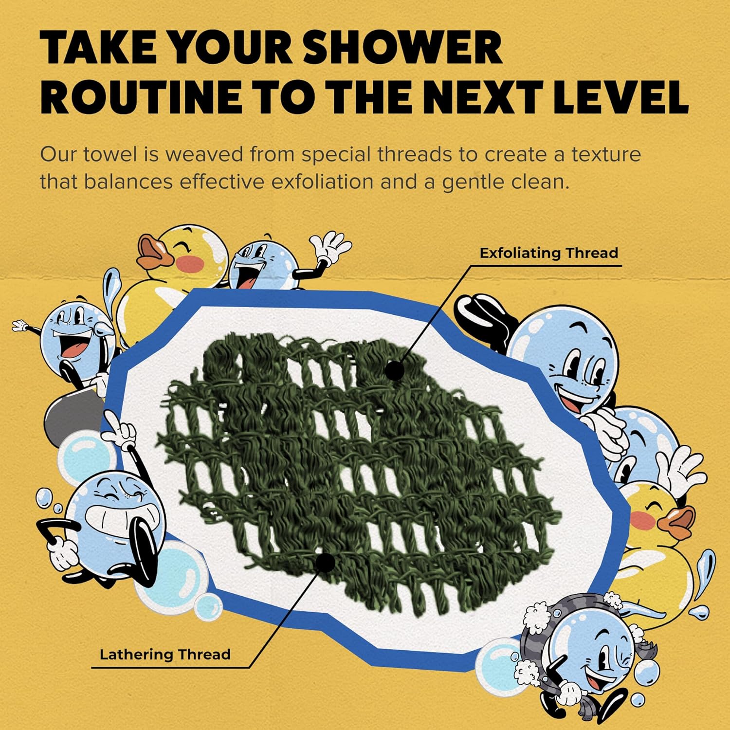 • Signature Rip-Resistant Fabric: Our towel is made up of two uniquely developed threads woven together to balance exfoliant effectiveness and efficient cleanliness. It has a thin lathering thread, tightly woven to create a rich lather for a complete clean. Plus, a textured exfoliating body scrubber thread to scrub away dirt, oil, and dead skin cells, leaving your skin smoother and softer than you ever knew possible.