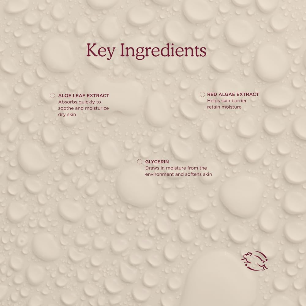 - HYDRATING INGREDIENTS: This skincare is formulated with a cocktail of powerful moisturizers that instantly absorb into dry, thirsty skin. These include Aloe Leaf Extract, Red Algae Extract, Glycerin and low-molecular weight Hyaluronic Acid.
